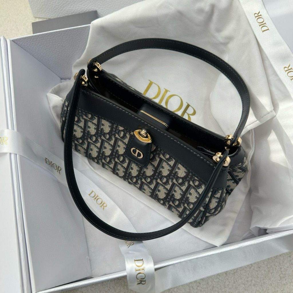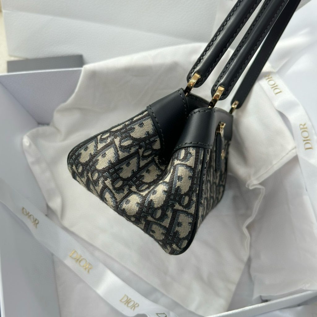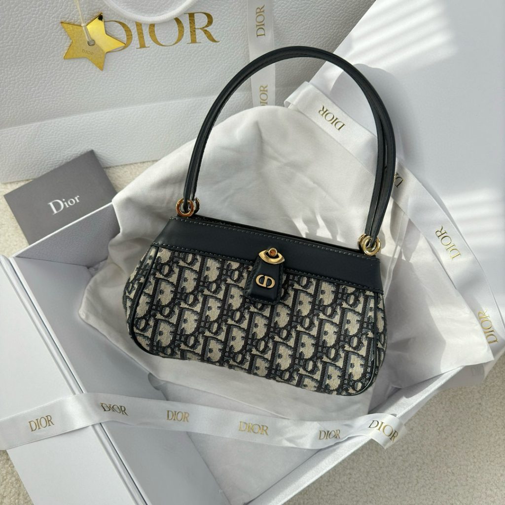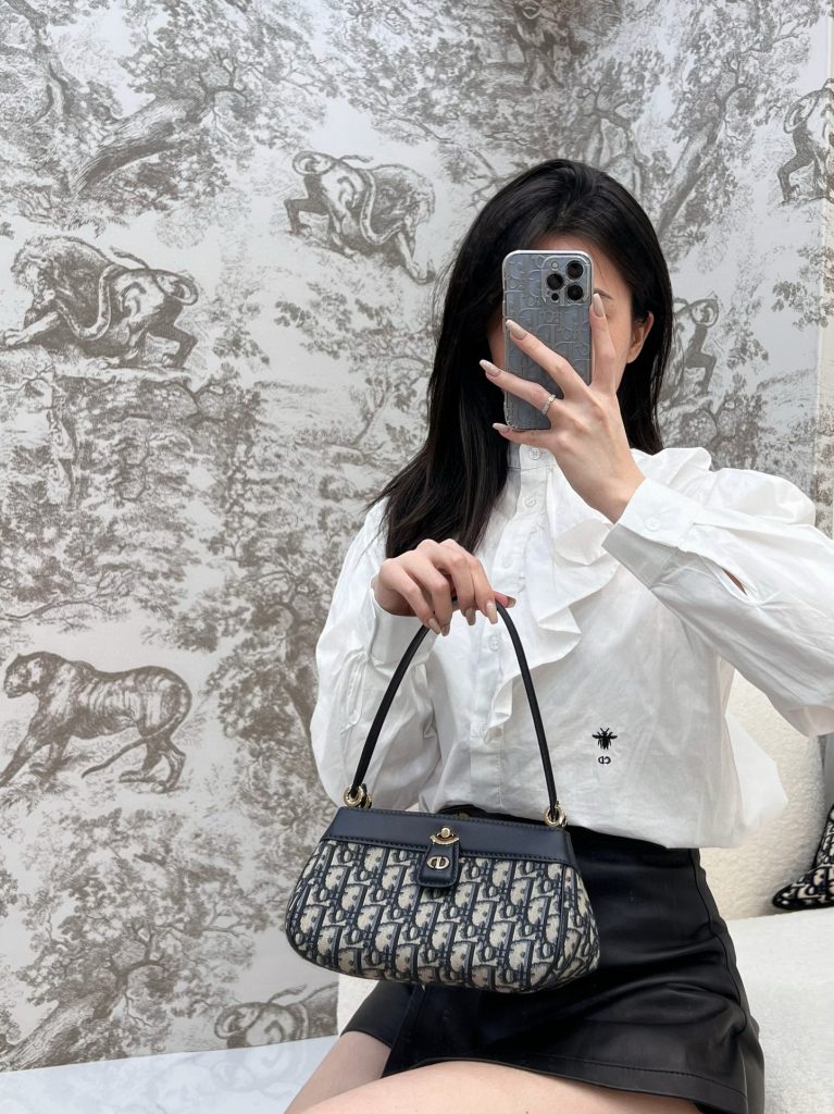 With its underarm bag shape and classic monogram design, this bag exudes elegance. The rounded body adds a playful touch, and the long handle enhances its French chic appeal. The front features a small CD logo ring, adding a touch of distinctive detail. This is a timeless piece you’ll always love.