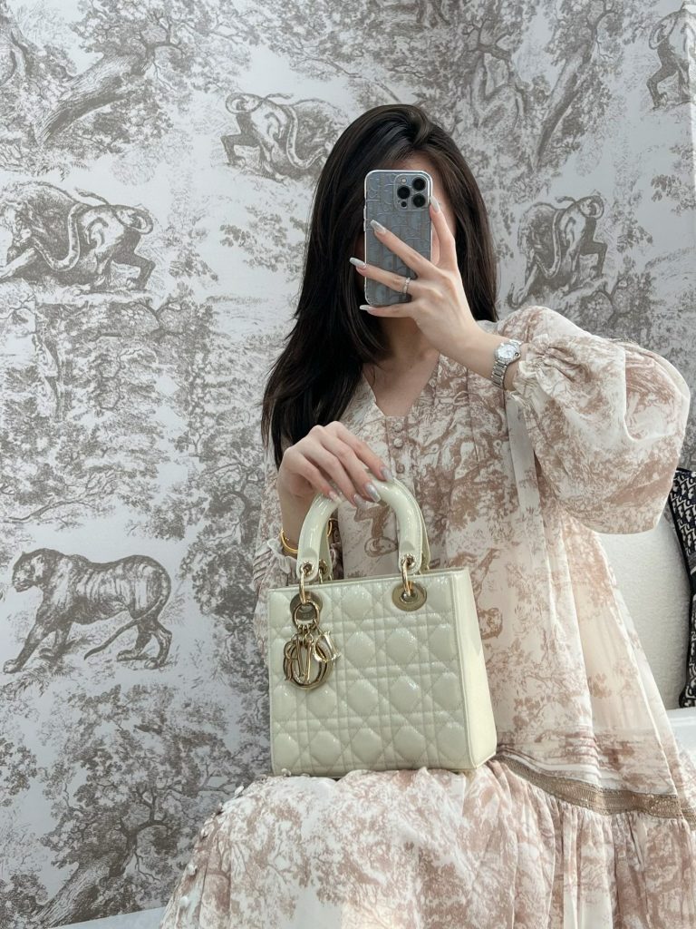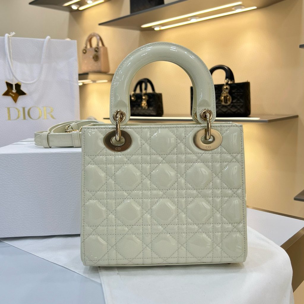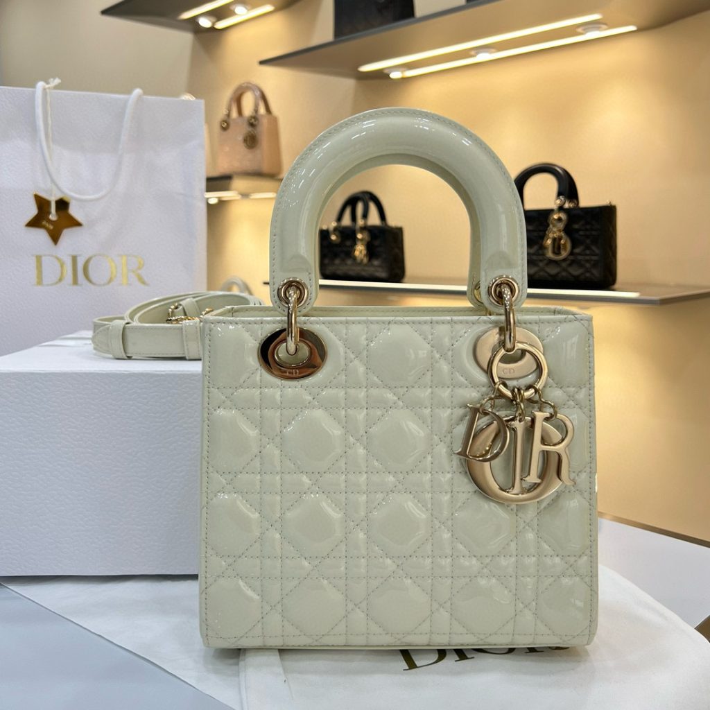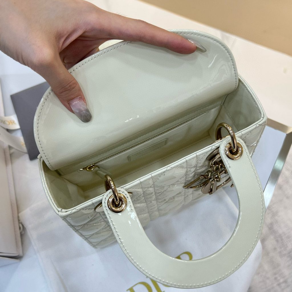 HomeBagsDior Lady Small Size cream white/Patent Leather