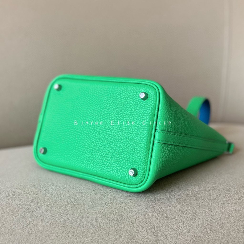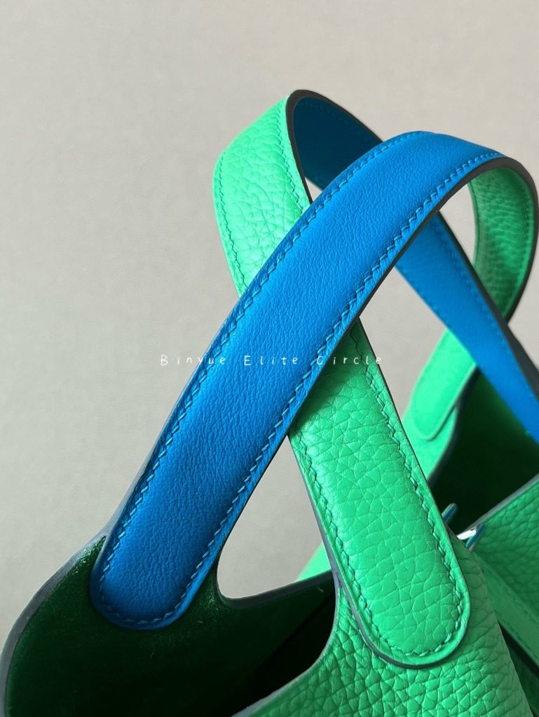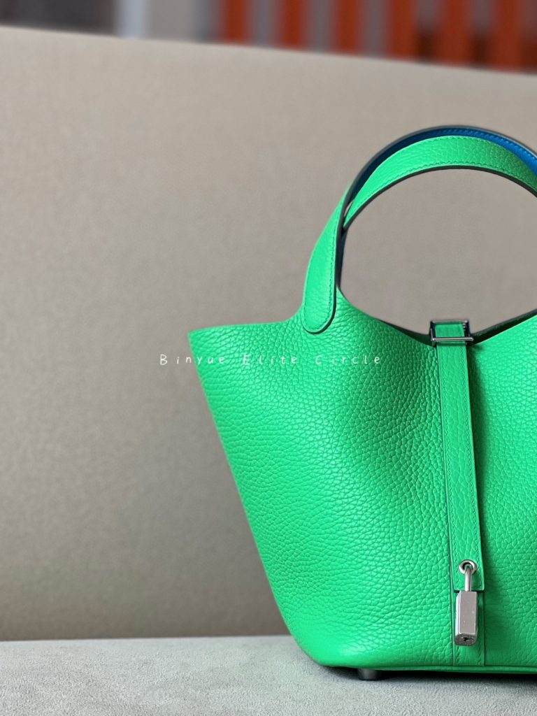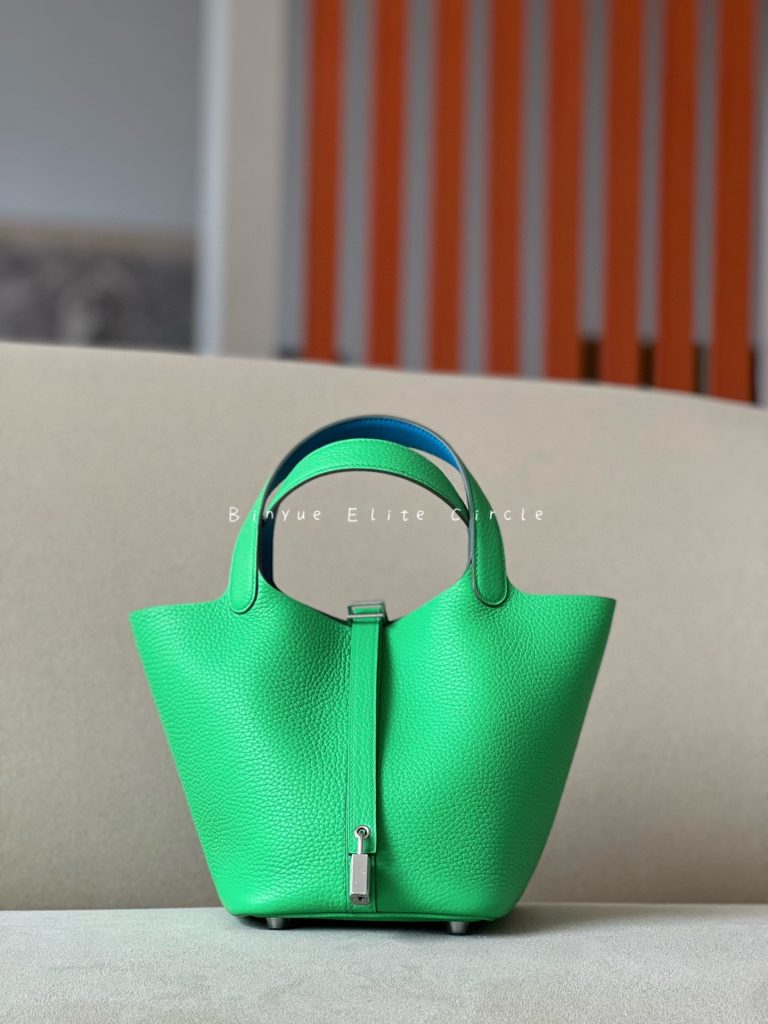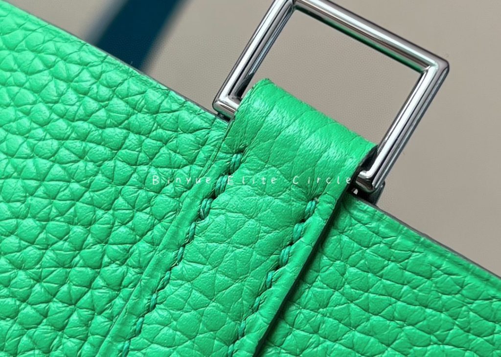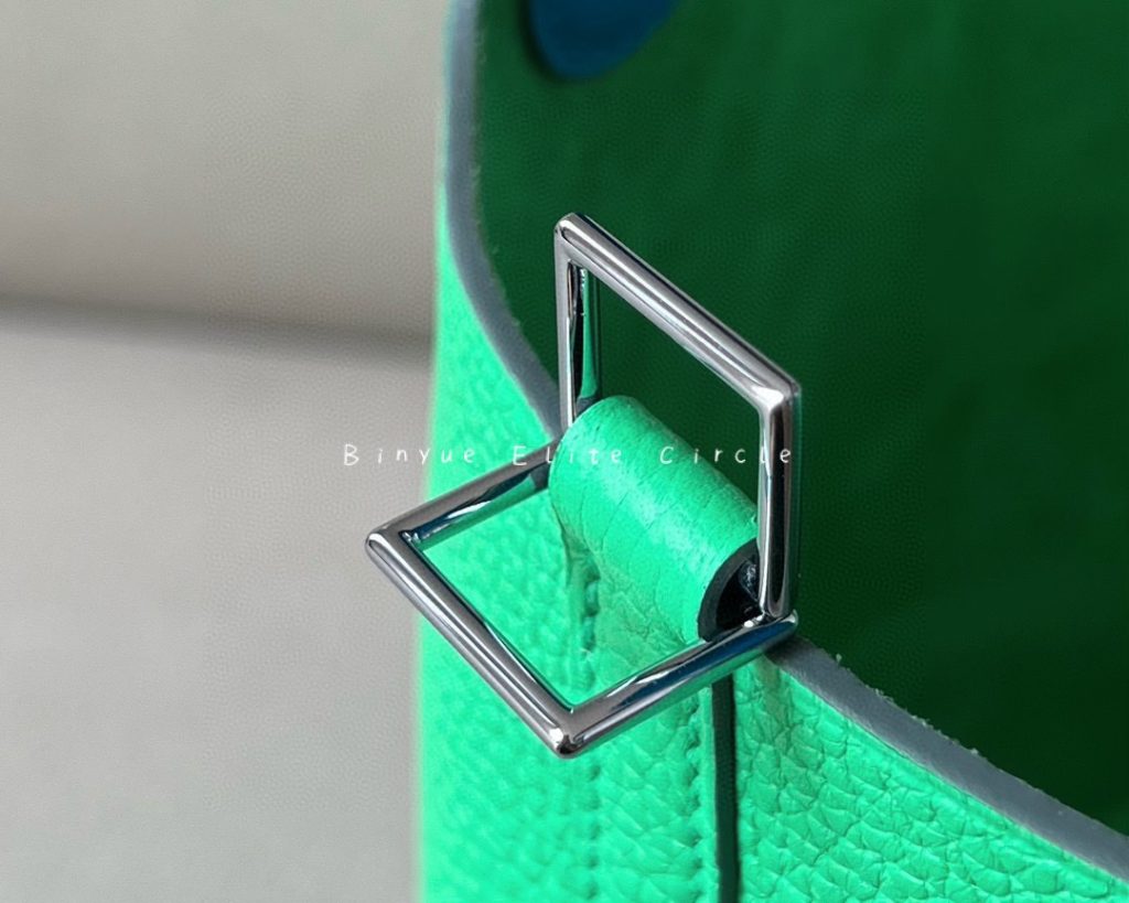 Description: Its shape resembles a bucket, with strong storage capacity. The bag body is soft and elastic, making it relatively lightweight and easy to carry. An additional strap is added to the opening, along with an “H” dedicated lock.