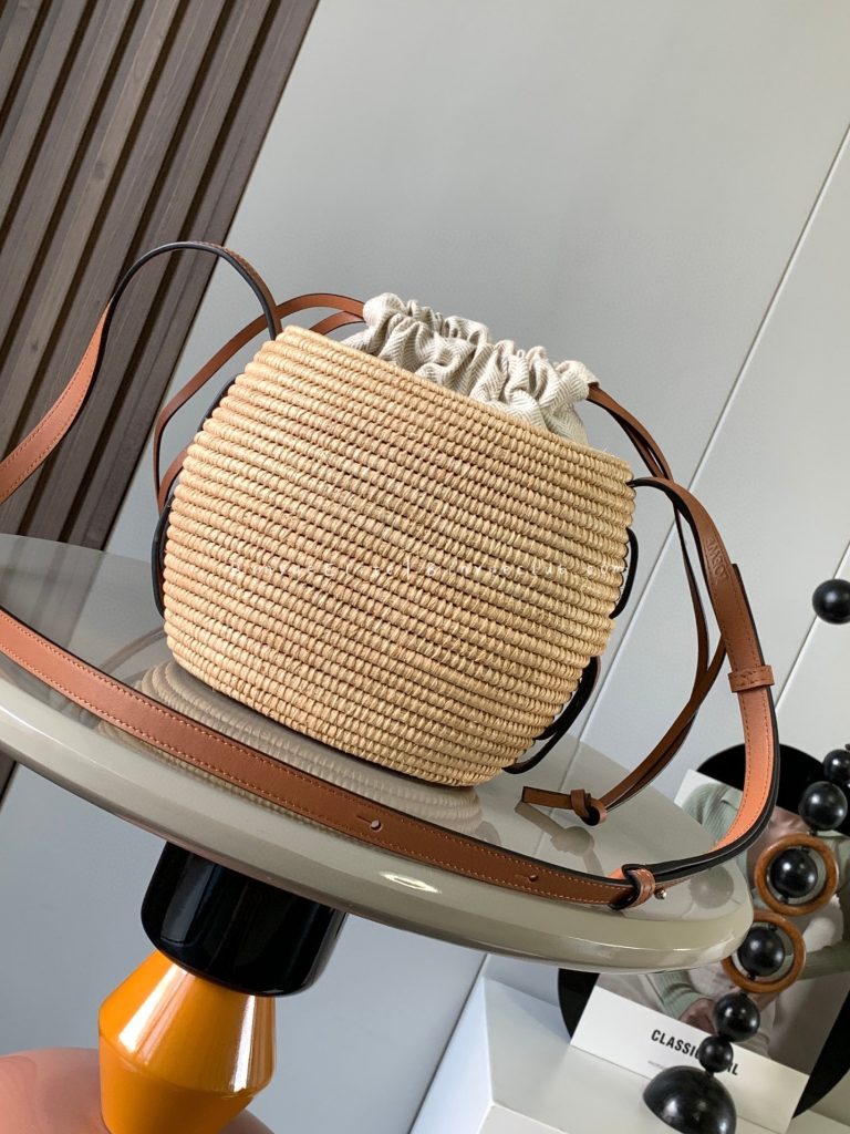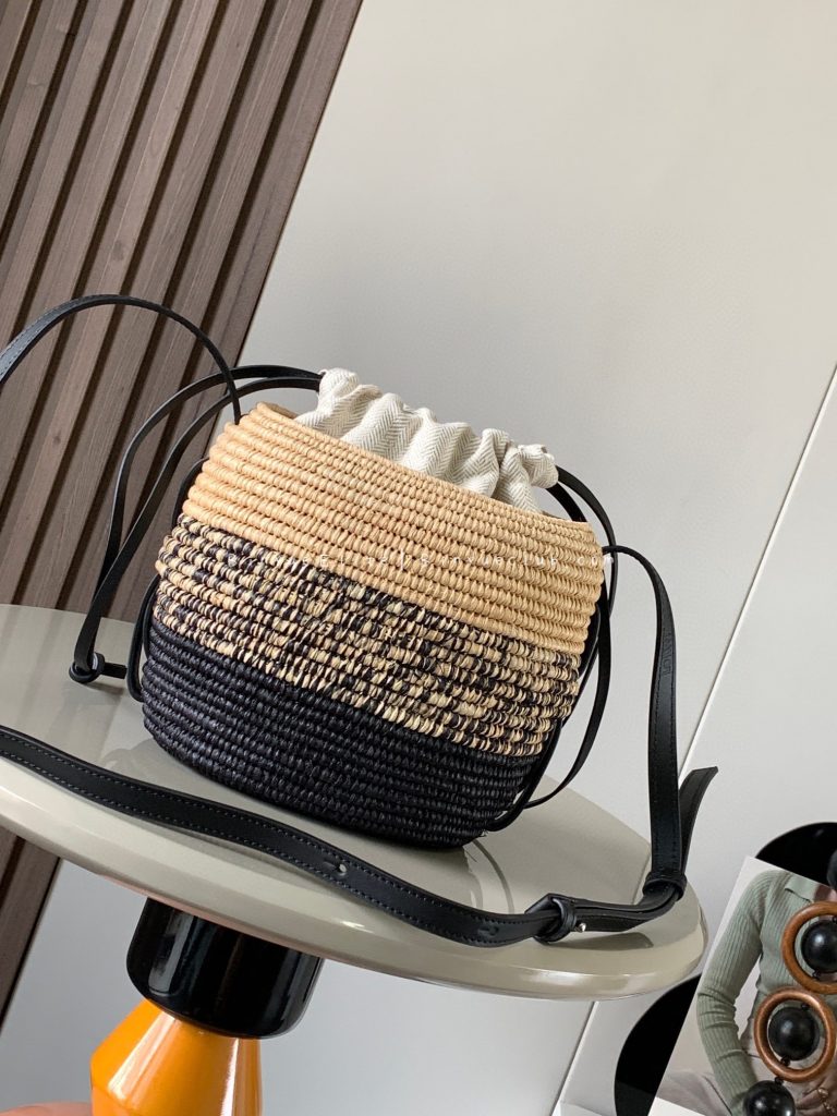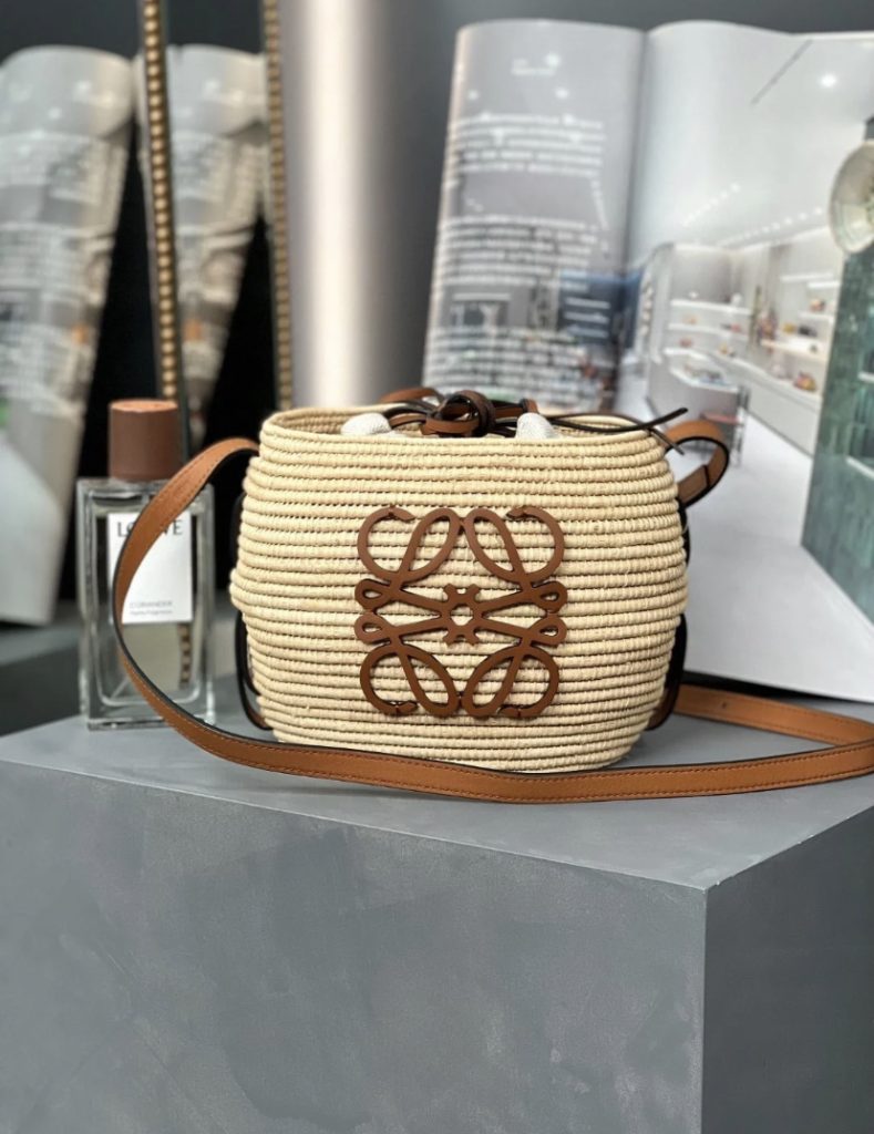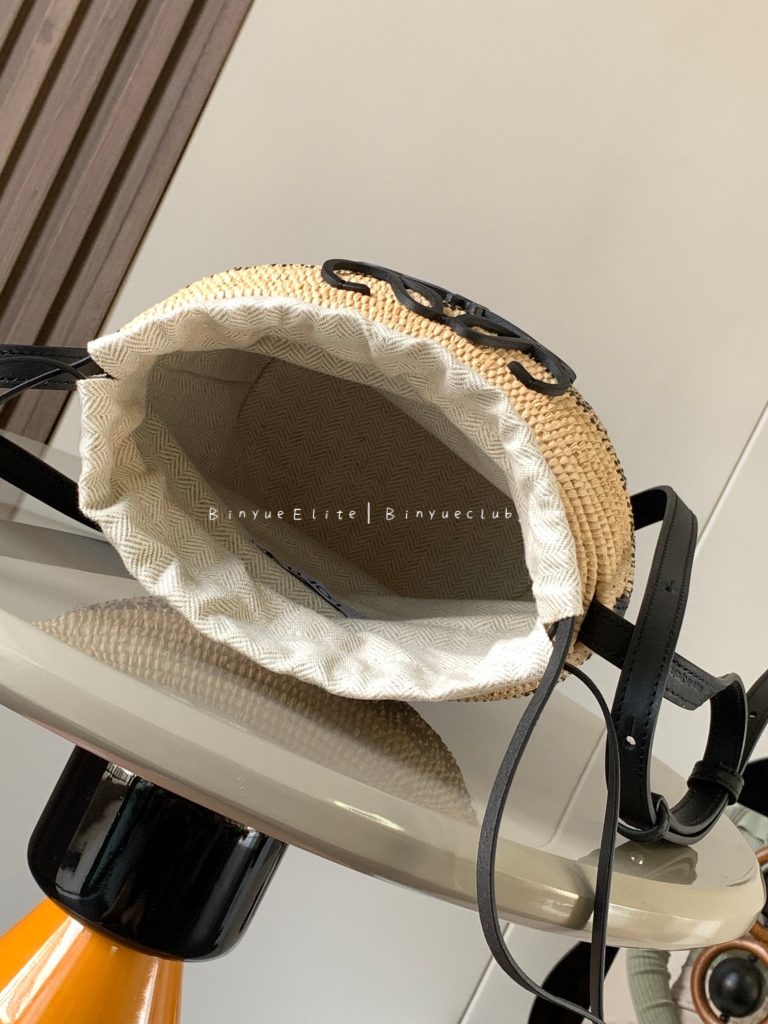 This version is crafted from wine coconut leaf fibers and cowhide leather, featuring a built-in drawstring pouch. The front is adorned with cowhide leather Anagram embroidery. Unlike the previous single-shoulder woven bag, this one can be worn crossbody or single-shoulder style, with a spacious and accommodating capacity. It can easily hold items such as a phone, lipstick, compact powder, tissues, keys, wallet, and even a power bank and hand cream. It comes with a non-detachable inner pouch for more convenient organization.