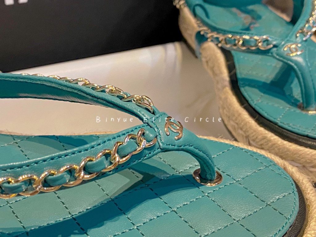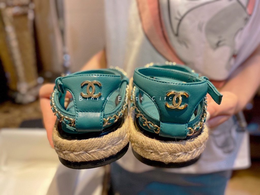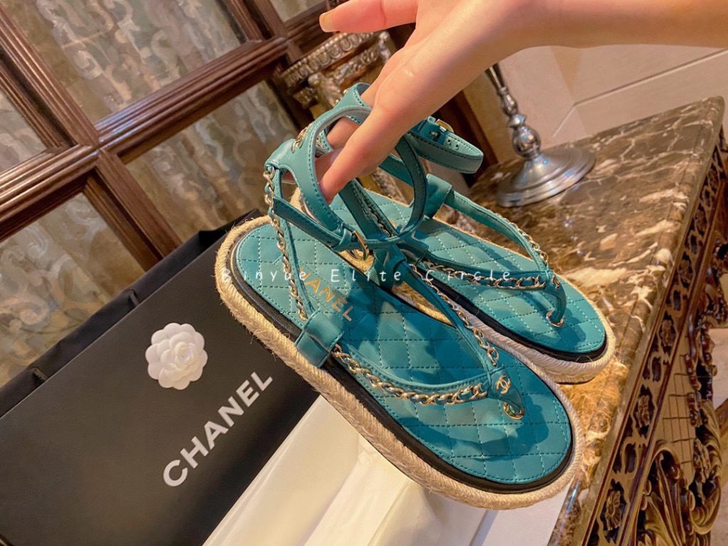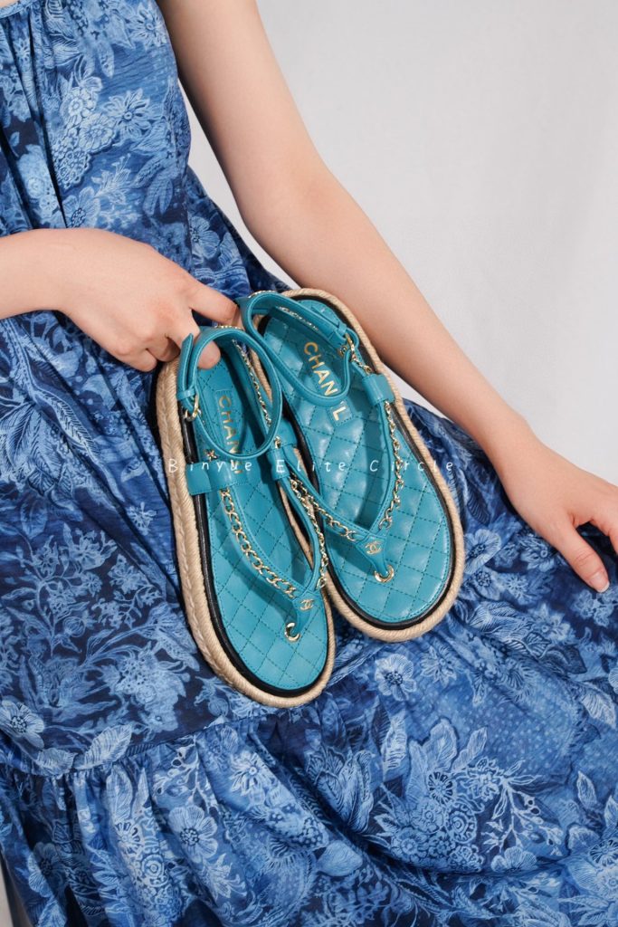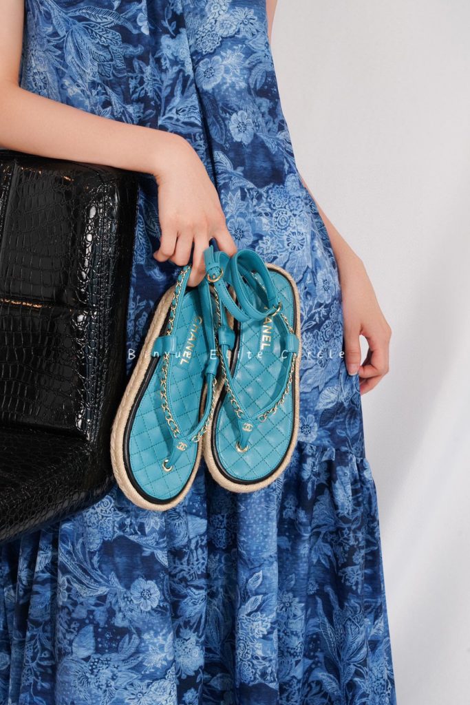 ๐น Captivating blue color, Sweet and stylish at the same time! Braided straw and rubber outsole, Leather-woven chain strap + lambskin insole, Both the shoe design and details are extraordinary. Color enthusiasts will be thrilled, radiating beauty like a shark. ๐ฆ