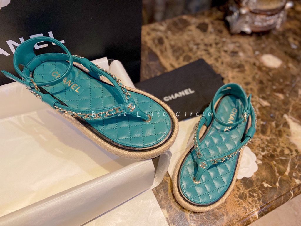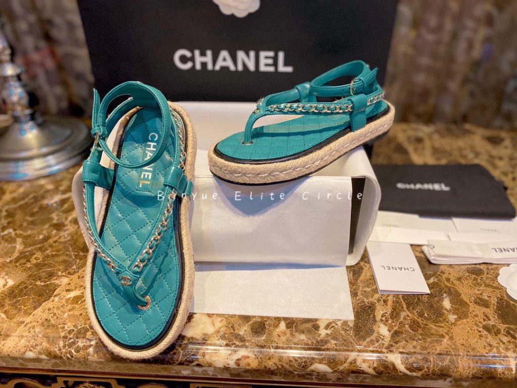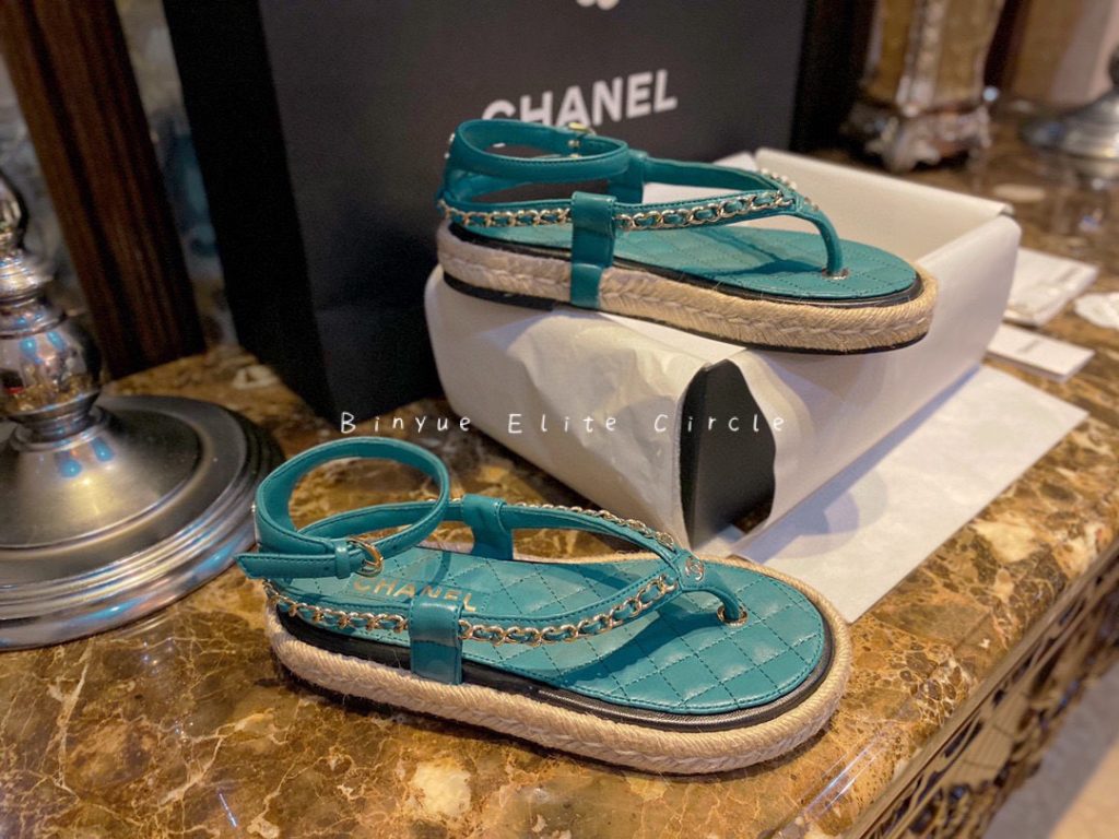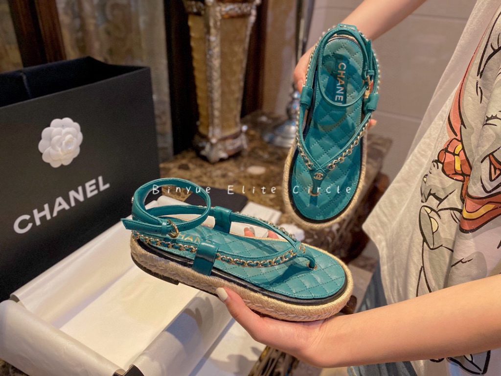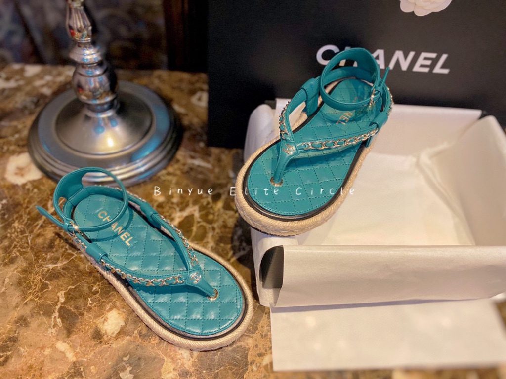 ๐น Captivating blue color, Sweet and stylish at the same time! Braided straw and rubber outsole, Leather-woven chain strap + lambskin insole, Both the shoe design and details are extraordinary. Color enthusiasts will be thrilled, radiating beauty like a shark. ๐ฆ