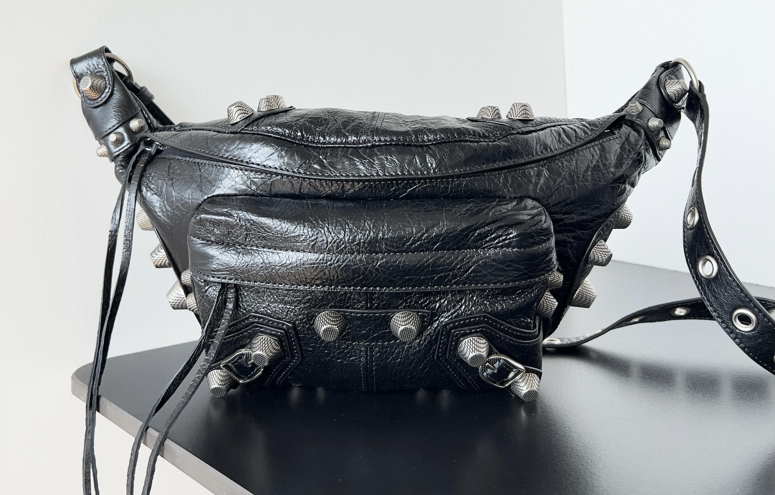 Versatile and effortlessly casual, this piece is both stylish and easygoing. Despite the numerous studs, it’s incredibly lightweight. Whether worn as a waist bag or a chest bag, it’s zero pressureโ๏ธ. Super cool and chic on the body, this new item from the motorcycle series features a cracked lambskin texture that’s absolutely perfect๐ฏ.