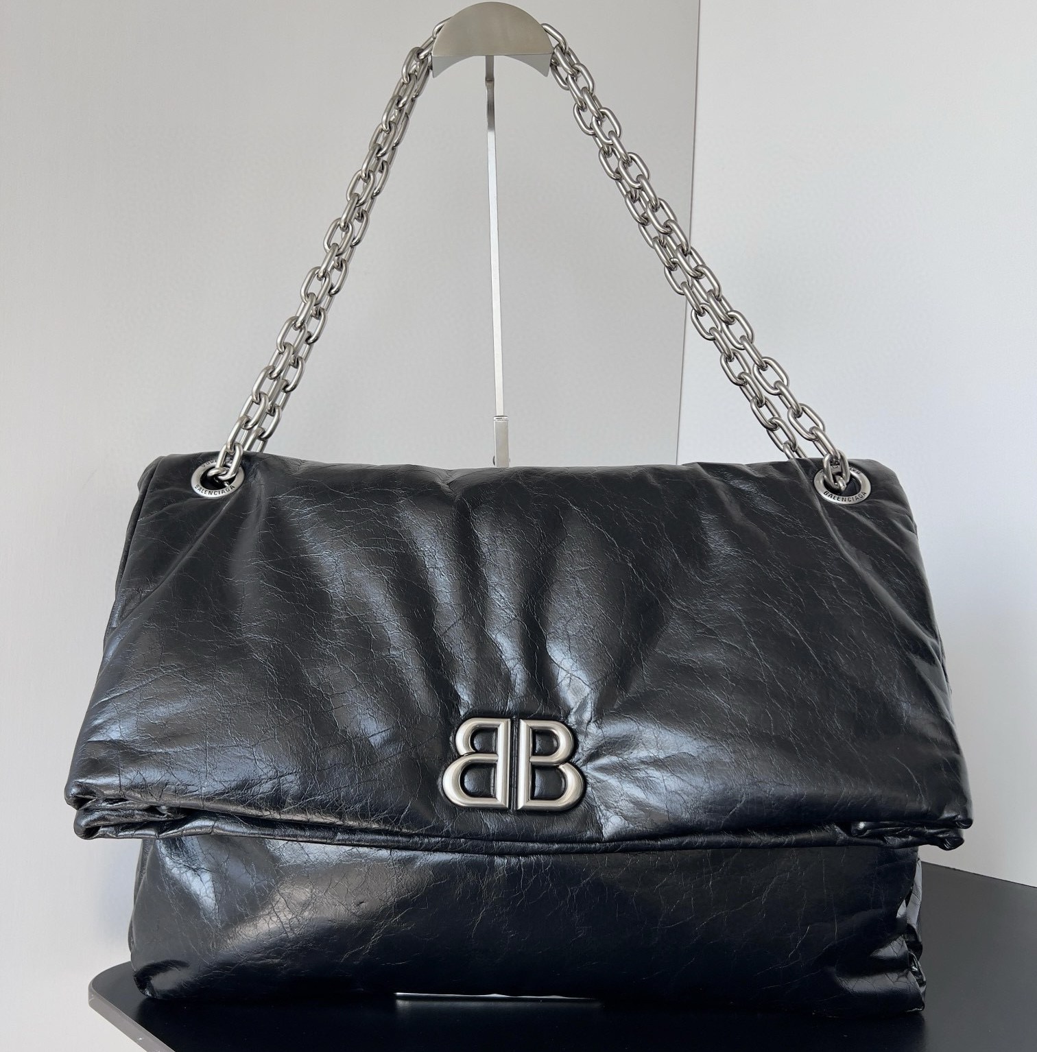 This new collection made its debut at the Winter 23 Detail Showโพ๏ธ and is renowned for its large silhouette and supple, textured body. Crafted from ultra-soft, cracked calfskin, the bag features a rich layered construction and is adorned with the classic round-edged BB logoยฎ๏ธ.