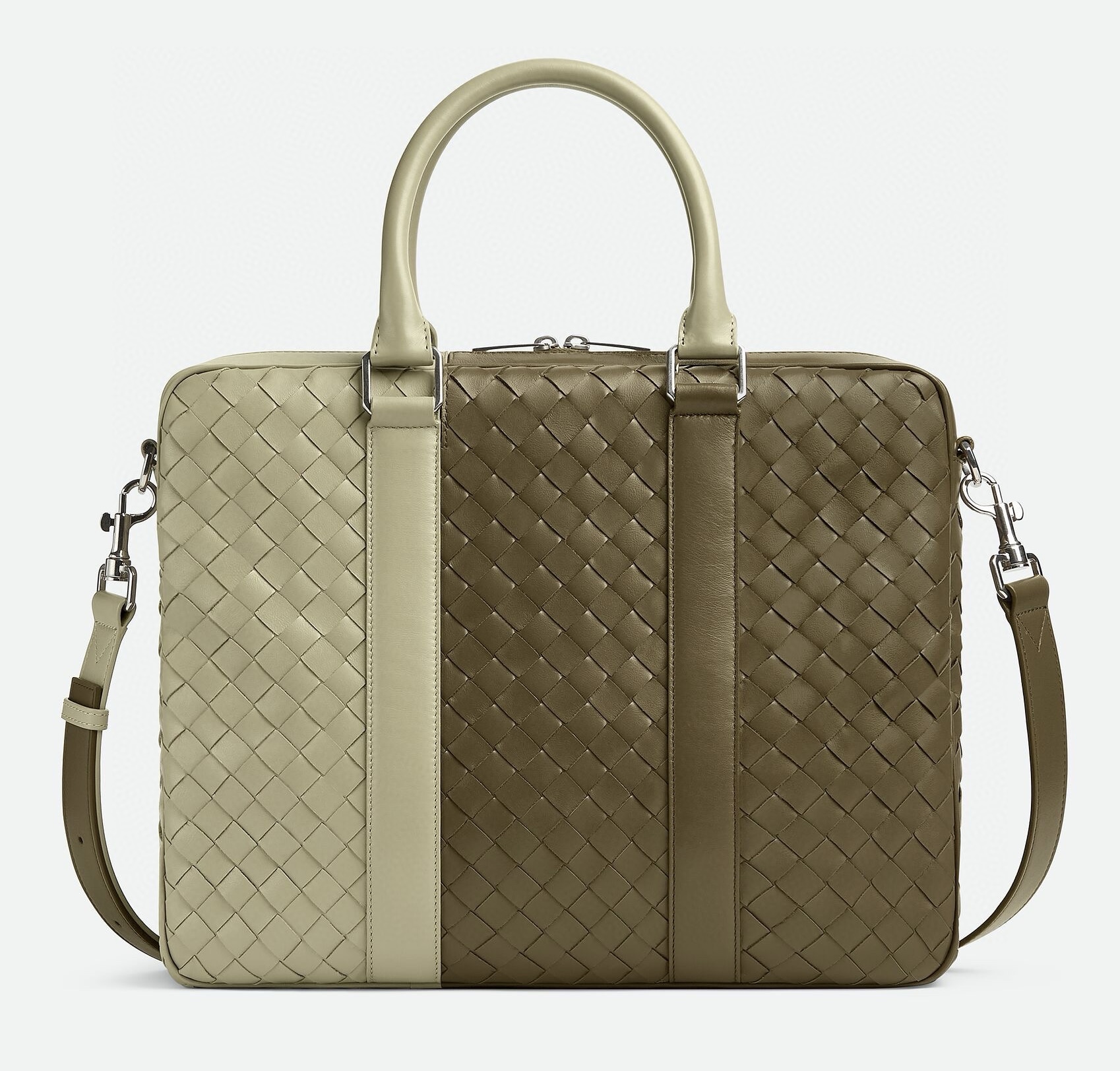A fine woven design that forms the BV logo, making it highly distinctive. Crafted from original cowhide with a zip closure, it offers a spacious interior with a zip pocket for practical functionality. The color-block shoulder strap is detachable, allowing for crossbody or hand-carry styles, suitable for both casual and business occasions, combining sophistication with a sense of fashion.