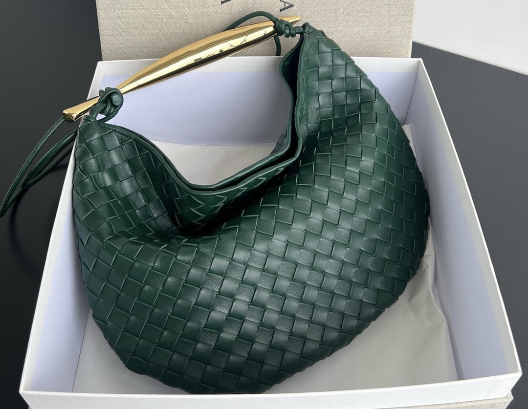 It is a larger-sized sardine than the original version, with an additional shoulder strap to free up your hands and provide more comfort. The metal handle is combined with the classic weave, perfectly blending artistic sense with elegance and fashion. Through exquisite craftsmanship, a brand-new sardine-shaped handle is cast, with brass material adding the finishing touch, and each handle has a unique light-floating effect. The semi-circular body of the bag is woven with original sheepskin, without excessive embellishments, elegant and generous! Fashionable and advanced, easy to grasp!