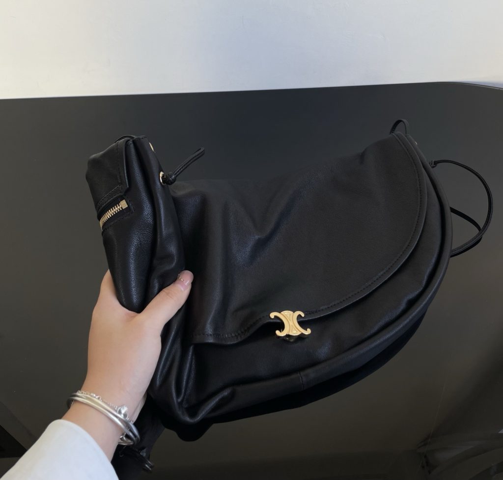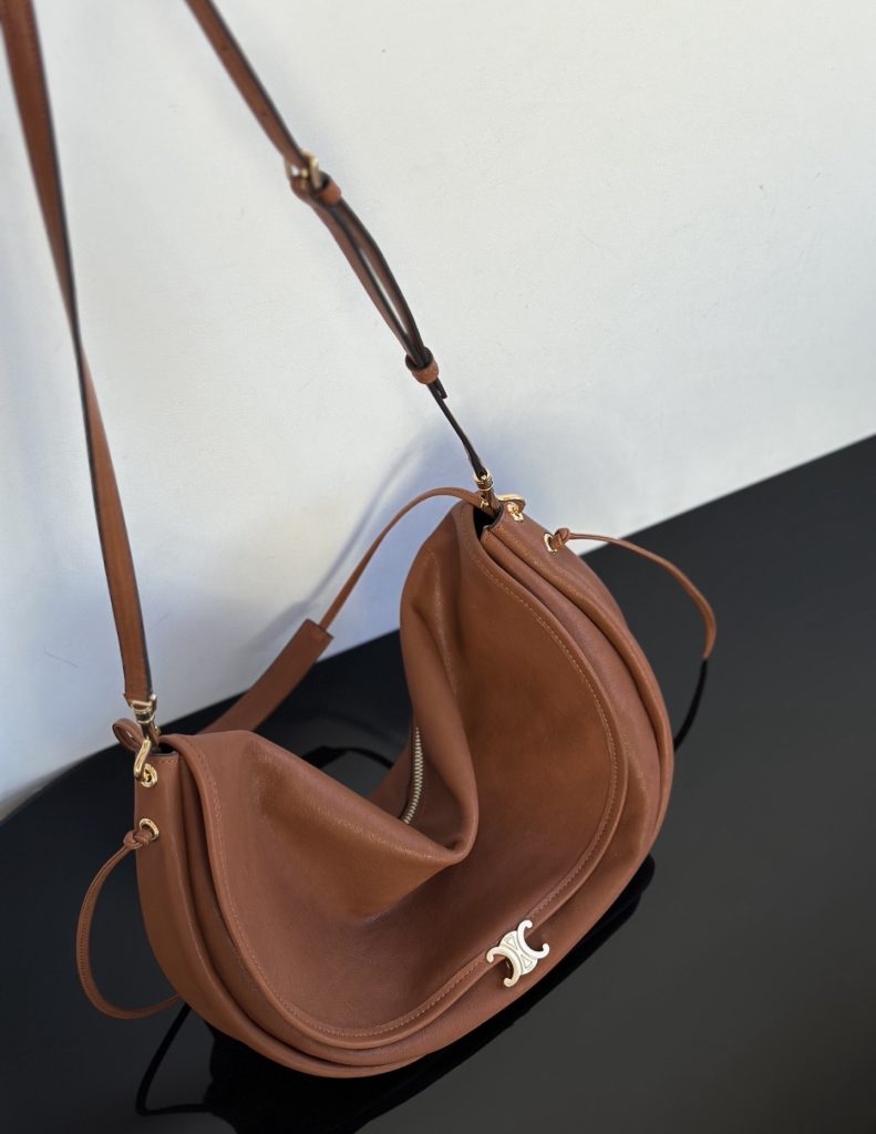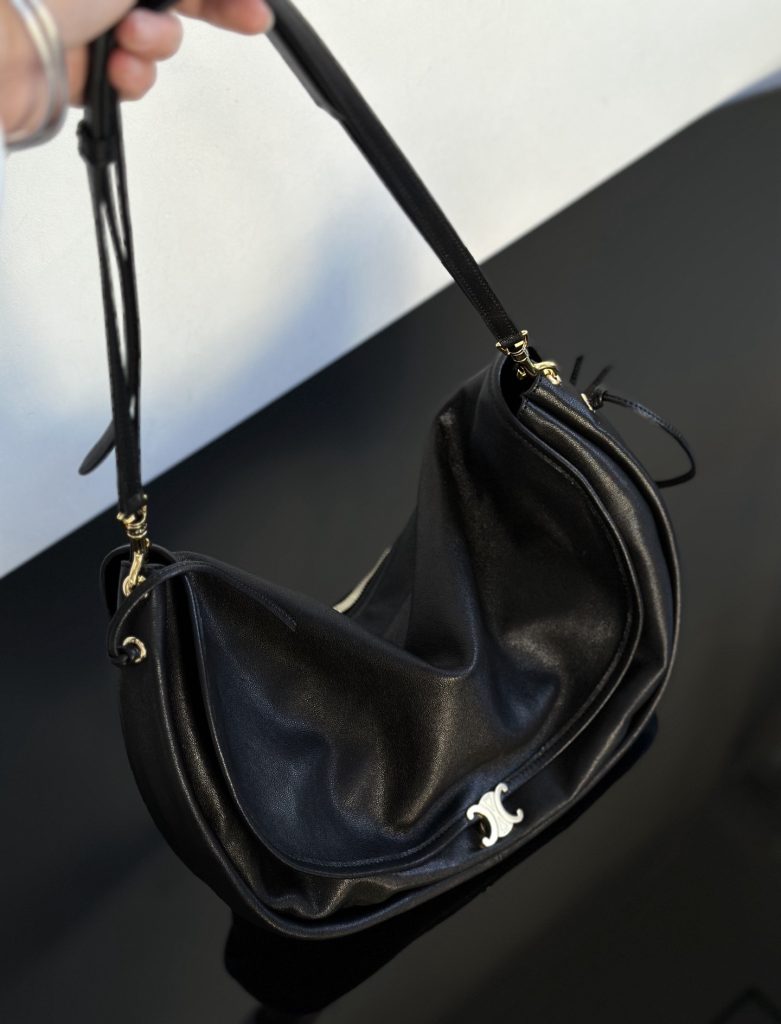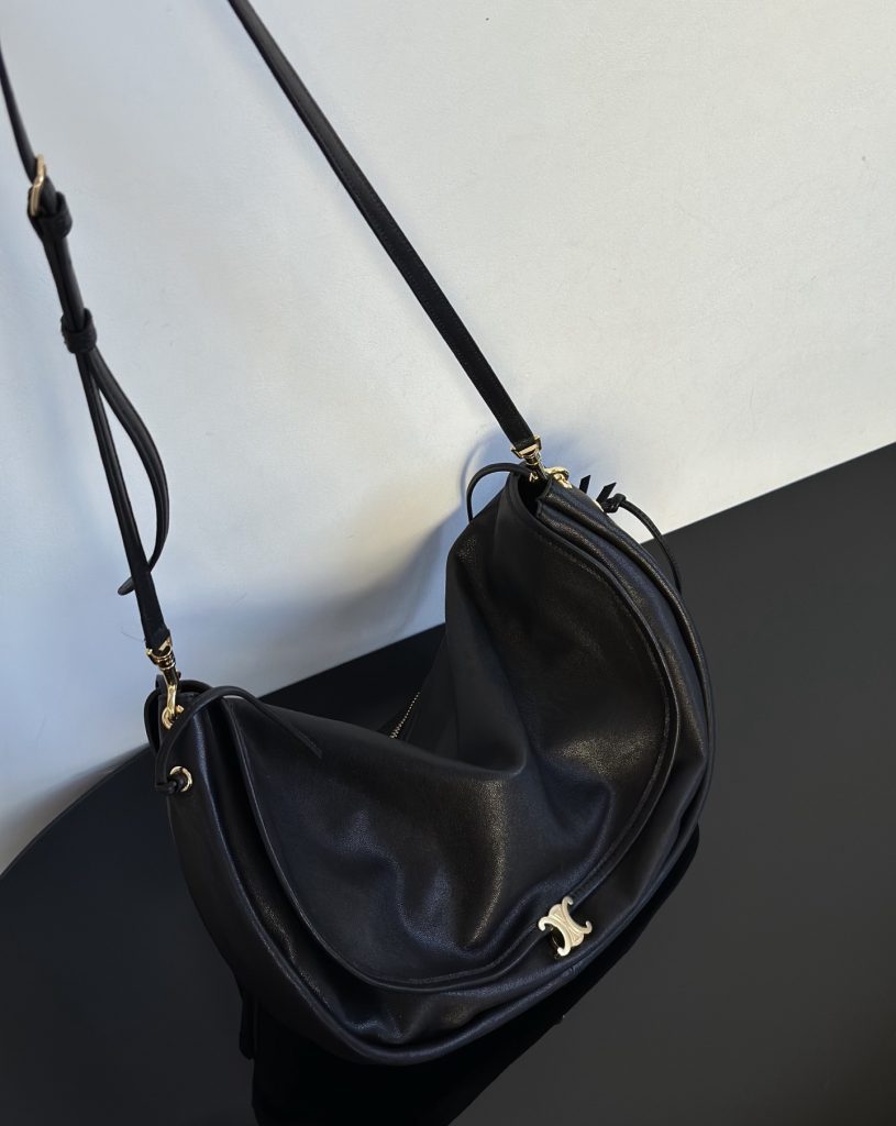 The Half-Moon Soft Triomphe is instantly recognizable for its oversized crescent silhouette. Worn on the shoulder, it feels relaxed yet intentional—fashion-forward without trying too hard. This is the kind of Celine shoulder bag that appeals to those drawn to a more intellectual, creative aesthetic rather than logo-driven statement pieces.