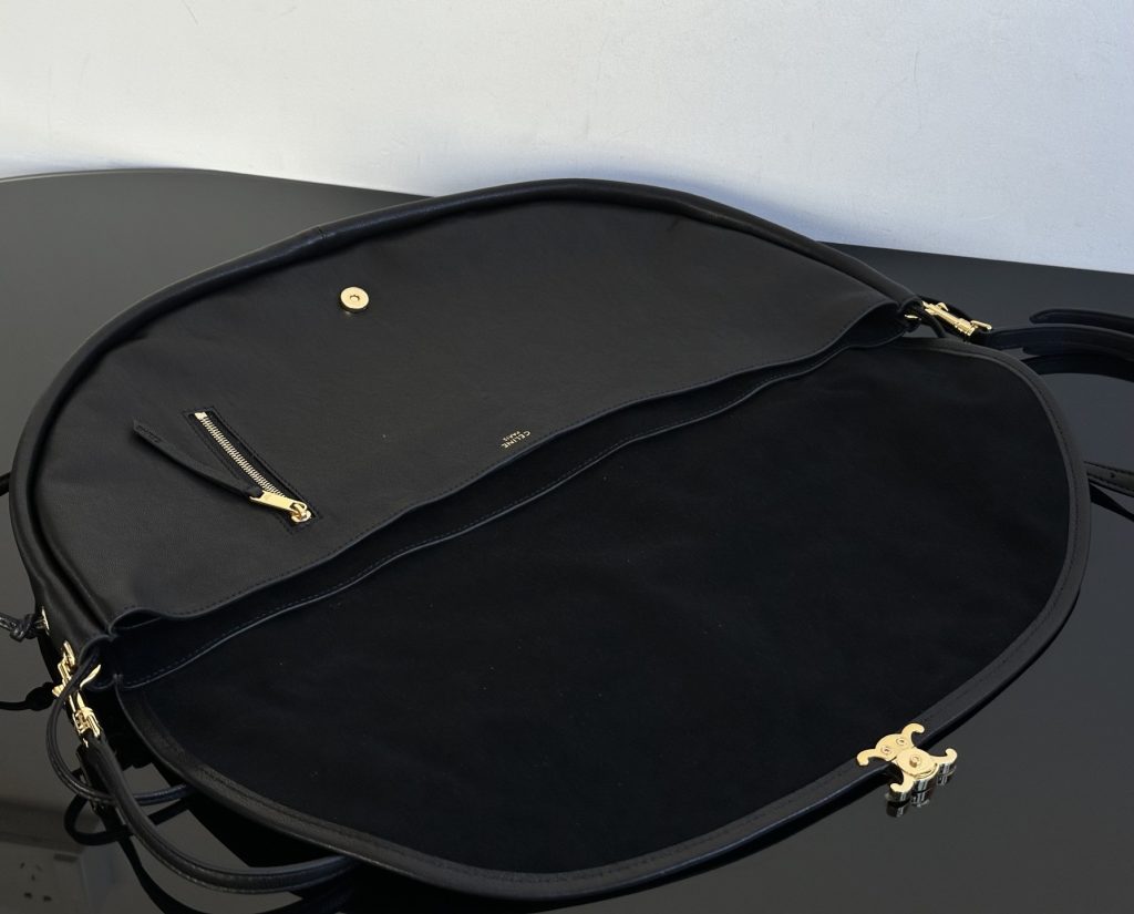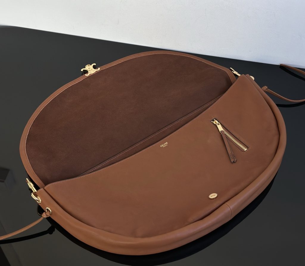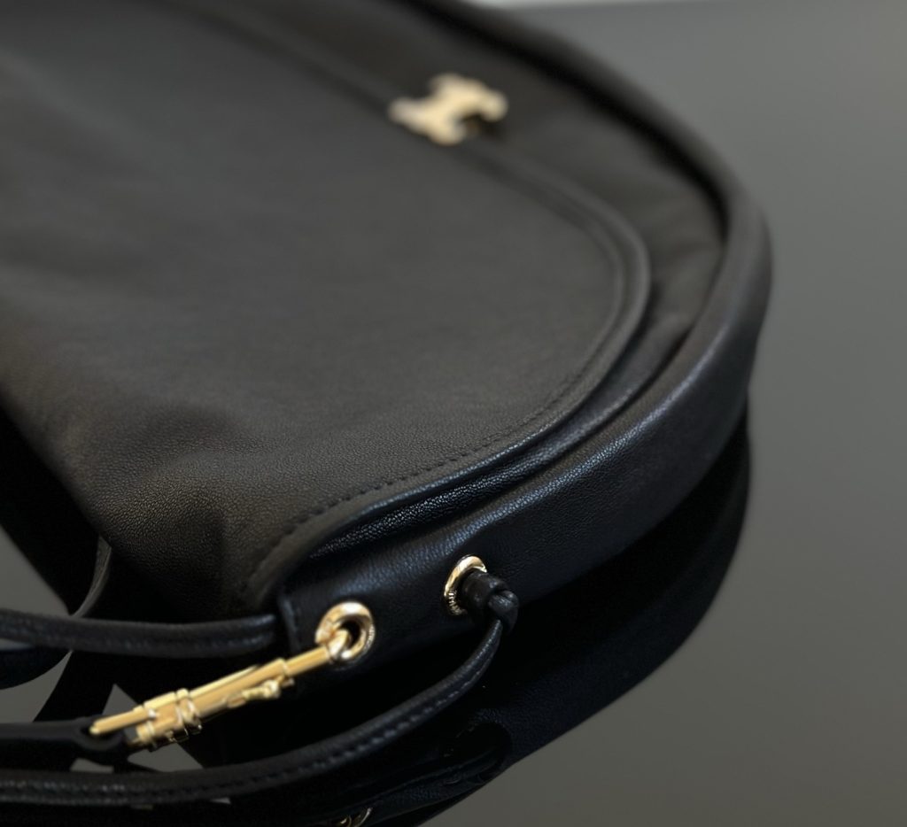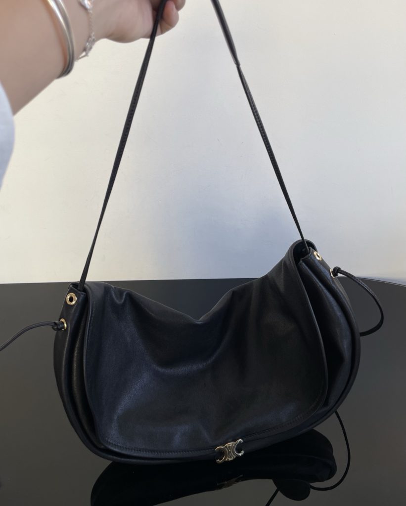 The Half-Moon Soft Triomphe is instantly recognizable for its oversized crescent silhouette. Worn on the shoulder, it feels relaxed yet intentional—fashion-forward without trying too hard. This is the kind of Celine shoulder bag that appeals to those drawn to a more intellectual, creative aesthetic rather than logo-driven statement pieces.