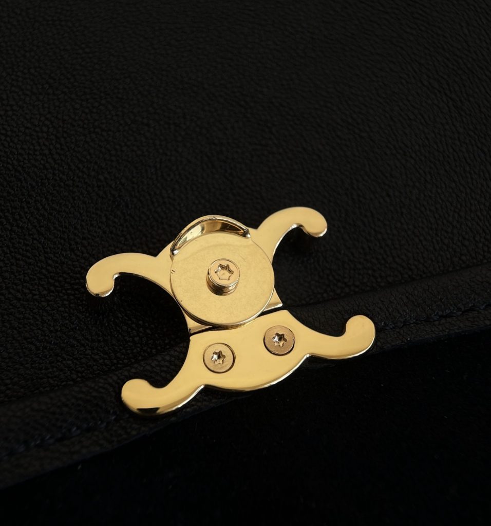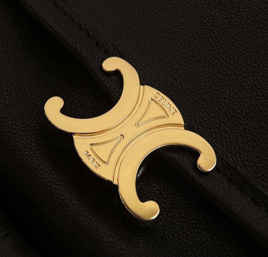 Crafted in supple lambskin leather, the bag has a naturally slouched softness that contrasts beautifully with the polished Triomphe metal logo. That tension—between structure and fluidity—is exactly what makes this design feel modern and distinctly Celine.