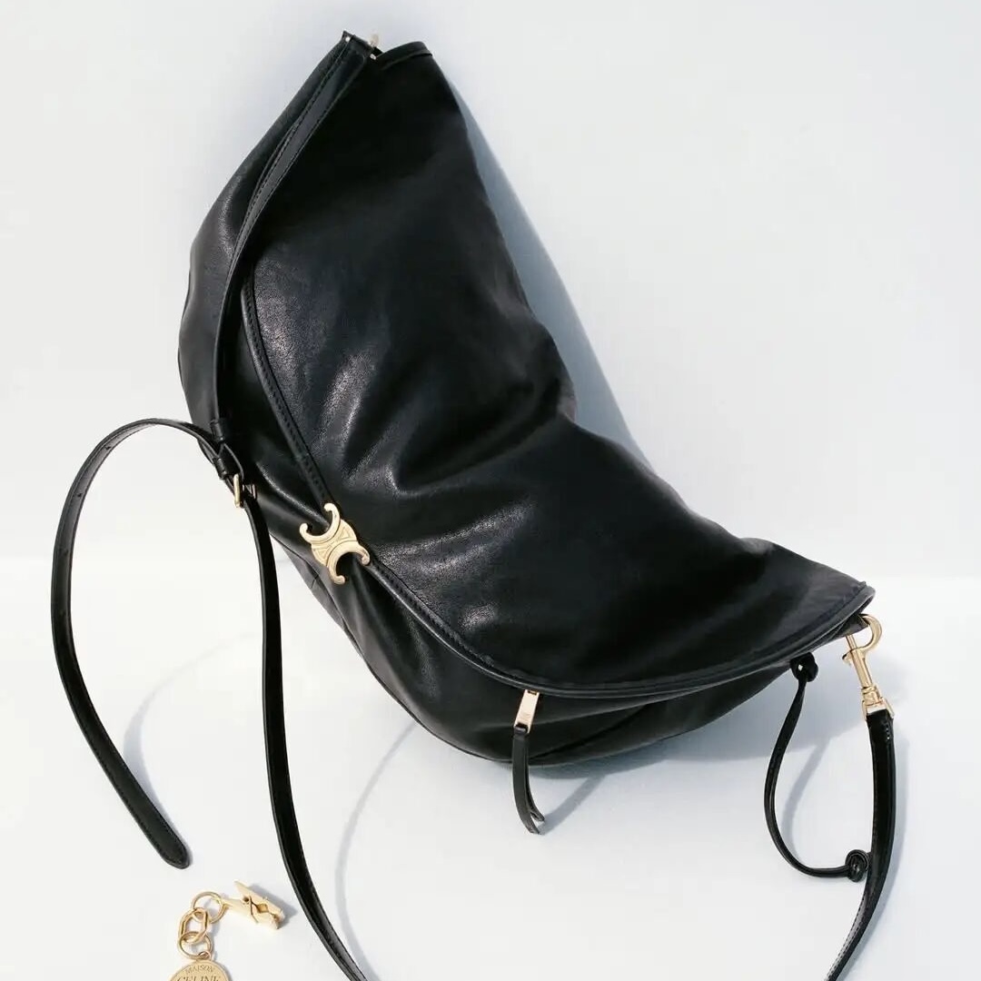 The Half-Moon Soft Triomphe is instantly recognizable for its oversized crescent silhouette. Worn on the shoulder, it feels relaxed yet intentional—fashion-forward without trying too hard. This is the kind of Celine shoulder bag that appeals to those drawn to a more intellectual, creative aesthetic rather than logo-driven statement pieces.