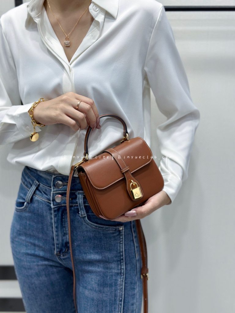 New lock-style bag! Made with original factory cowhide and original factory sheepskin lining! Can be hand-held, worn on the shoulder, or crossbody. The lock is purely decorative; the actual opening and closing is done using a flap clasp~ The overall texture has a matte finish, and when paired with some matte finish items, your entire outfit will exude sophistication. Even though it doesn’t have an extremely large capacity, it’s just adorable!