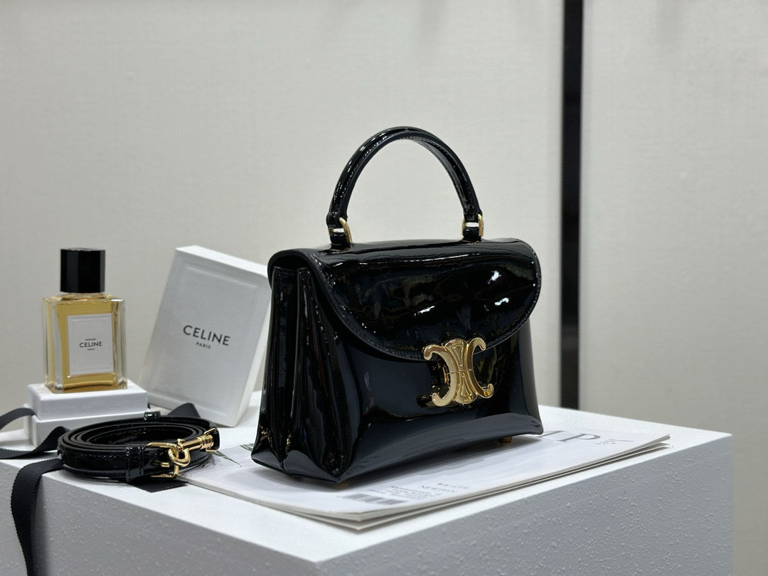 Made from imported original black patent calf leather with a lambskin lining, TRIOMPHE metal lock, the patent leather has an exceptionally beautiful texture, elegant and grand. It can be carried by hand, on the shoulder, or across the body.