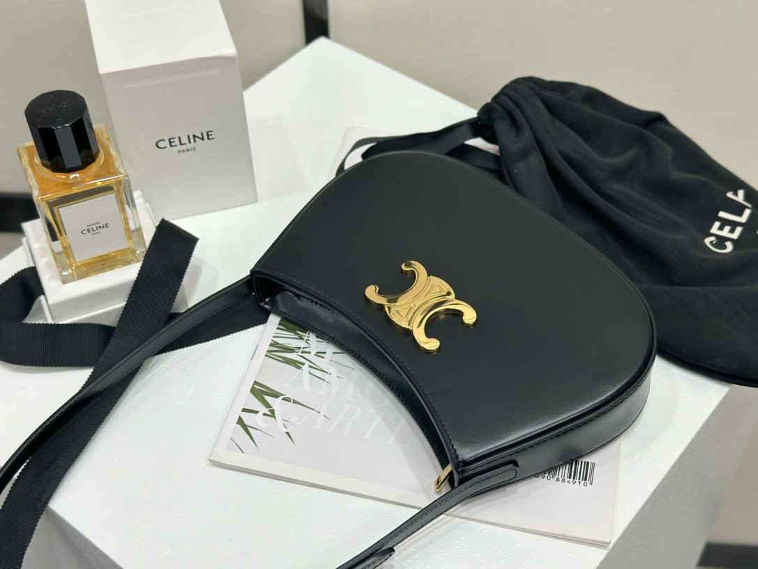 CELINE TILLY Medium Black Calfskin Leather Handbag