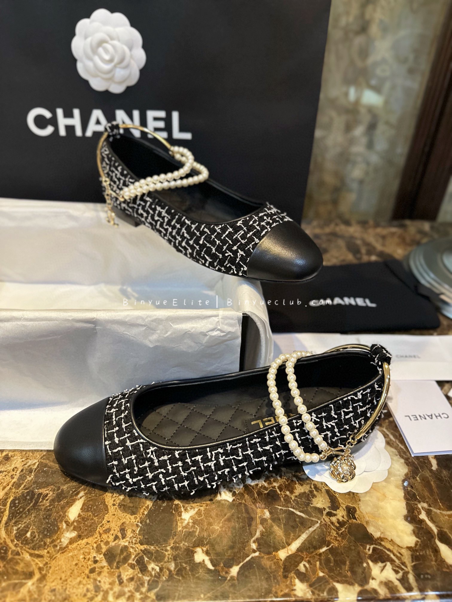 The black and white plaid fabric combined with black sheepskin on the toe is truly a subtle and sophisticated color combination. The swan pearl chain beautifully embodies the understated luxury of Chanel, exuding elegance without being ostentatious. Paired with the Italian leather sole, it further emphasizes the luxury of Chanel, creating a pair of shoes that embody understated luxury with depth and substance!