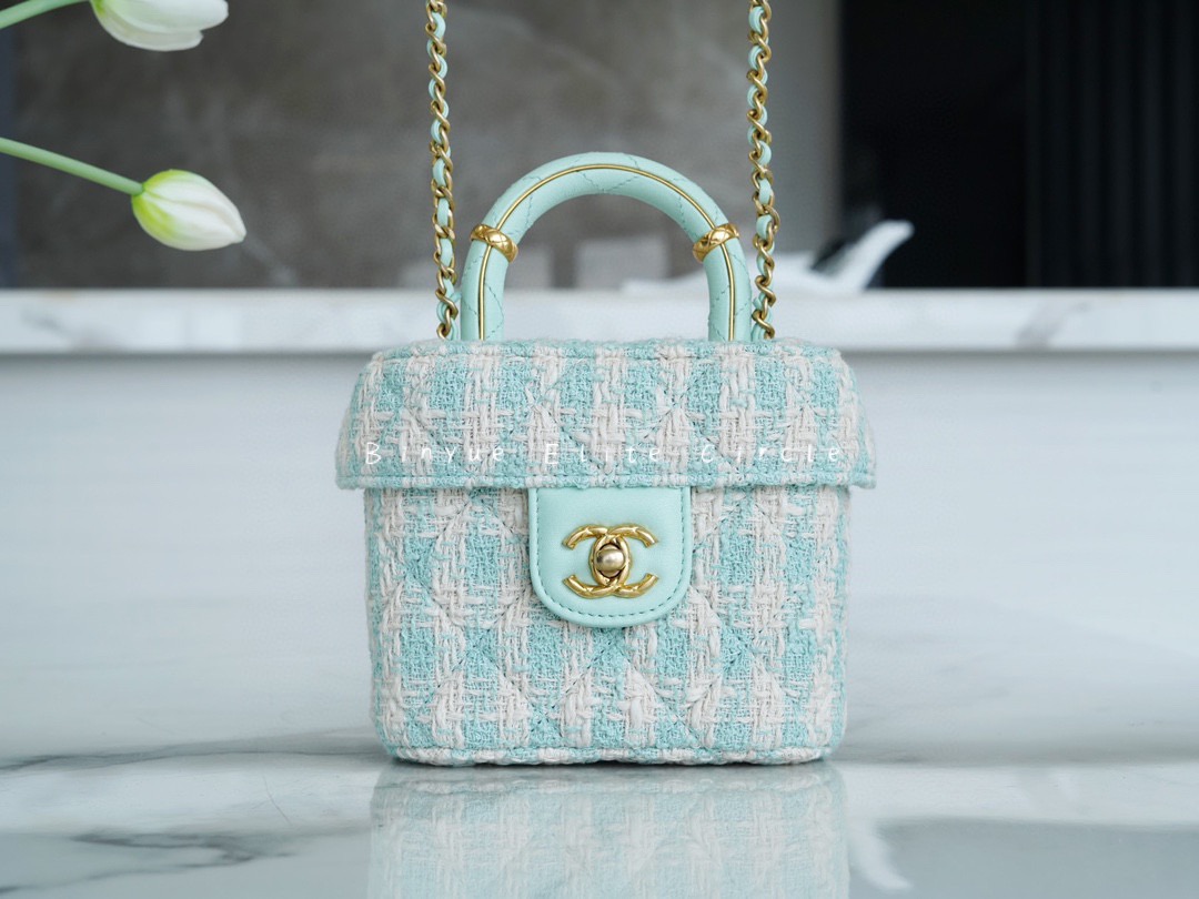Chanel 23s Tweed Makeup Bag – Mint Green show time