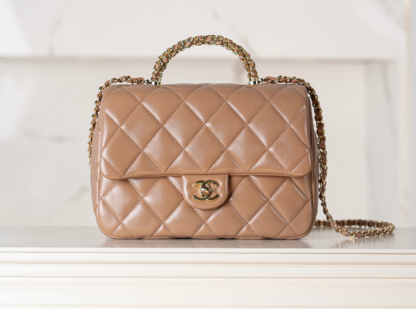 The original polished oil-waxed lambskin has a glossy texture. The “twisted” metal chain handle, which is hard to surpass in novelty, is a one-piece fixed handle composed of three non-connected chains. Each link of the chain has been manually chamfered and polished, making it an absolute heavy-duty solid copper thick gold chain~