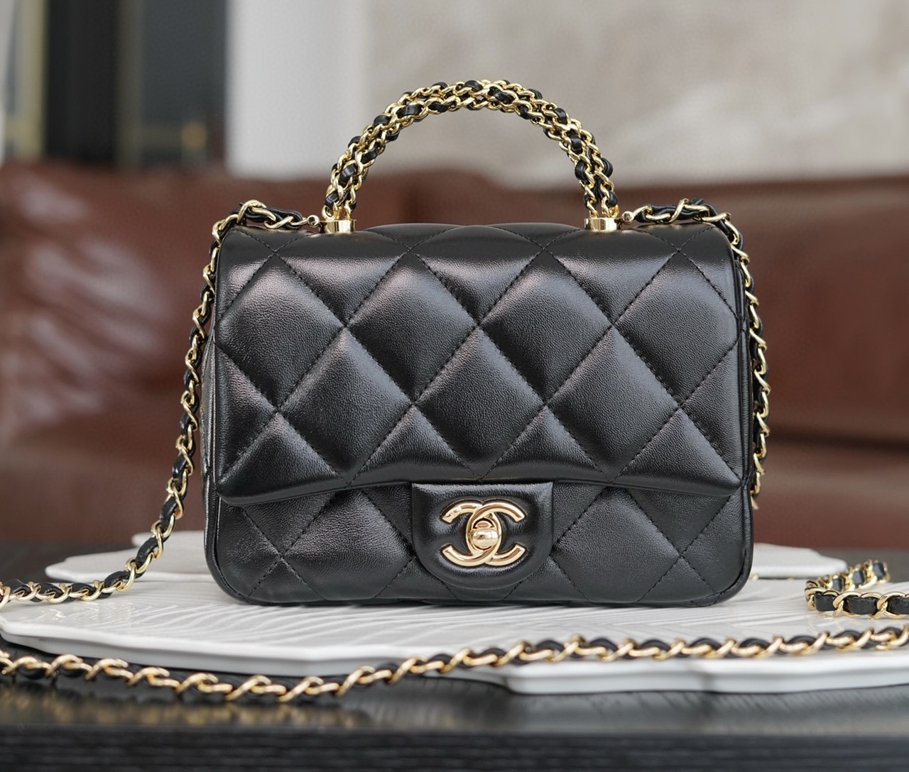 Polished original factory oil wax lambskin with a full sense of gloss. The “twisted” metal chain handle that is hard to reach a new height, composed of three interconnected chains forming a one-piece fixed handle, each link of the chain has been manually chamfered and polished, absolutely heavy work pure copper thick gold chain~