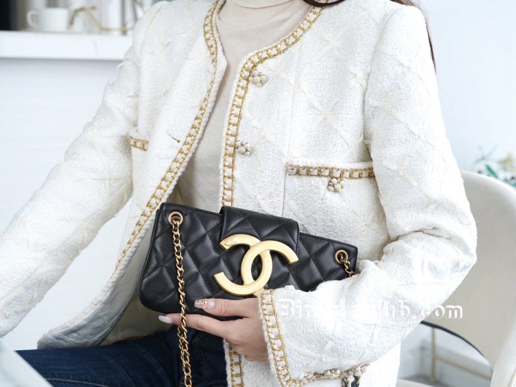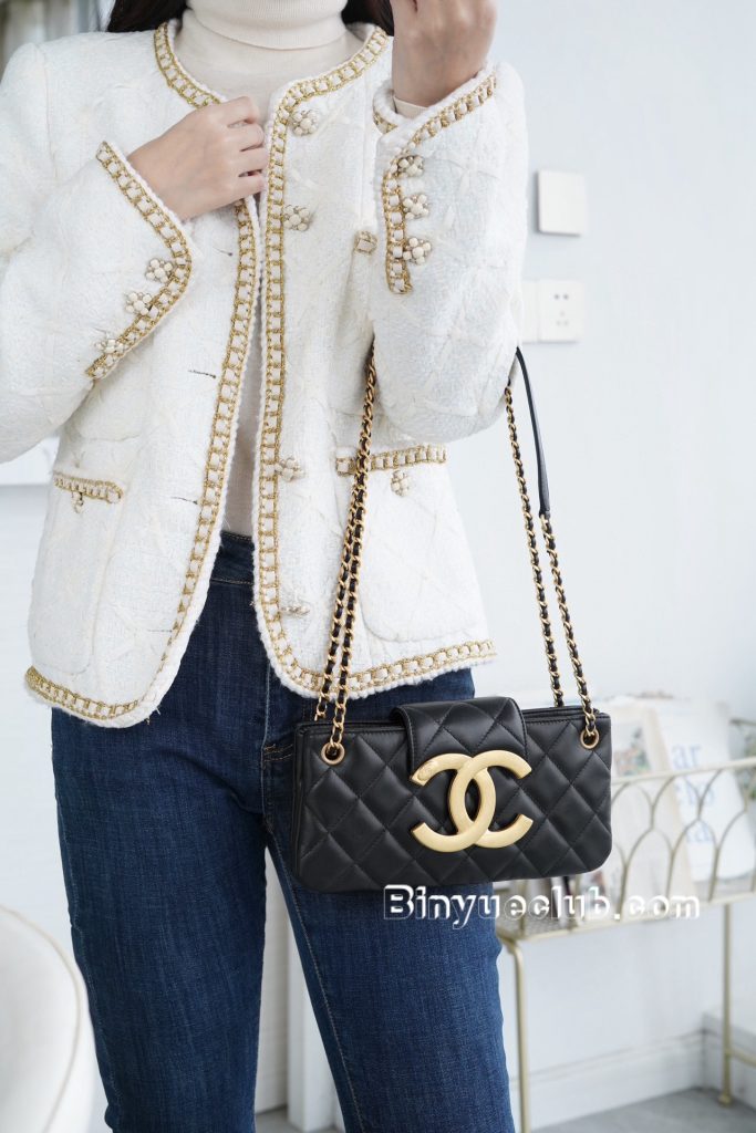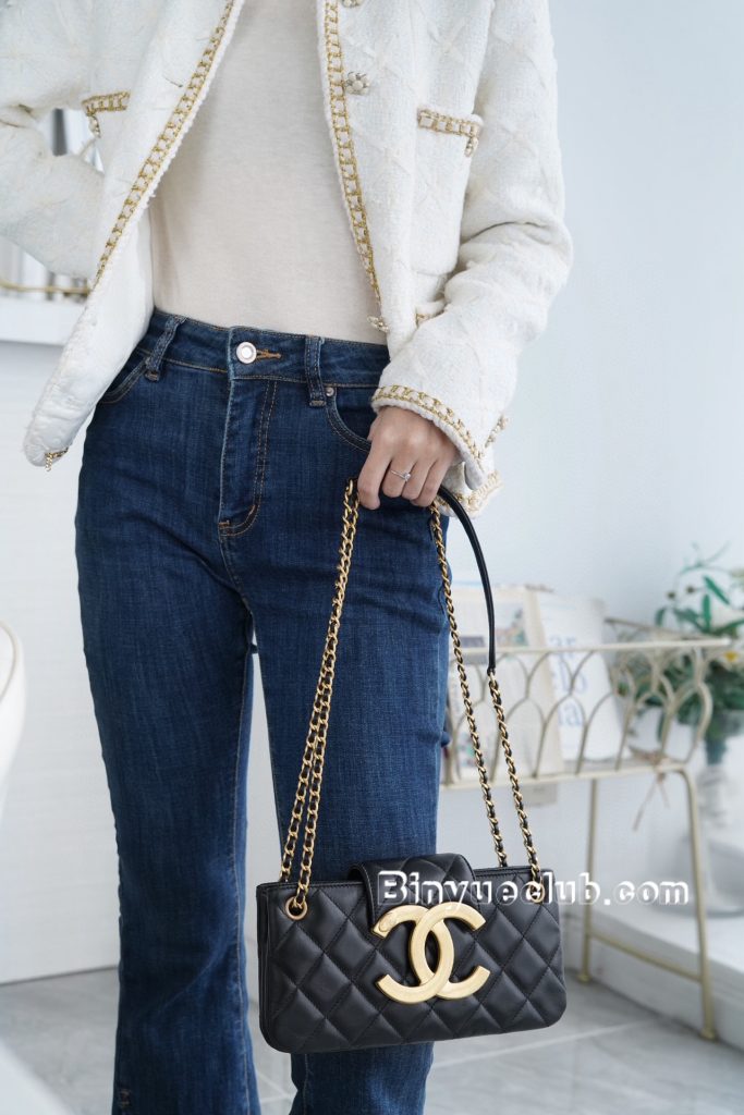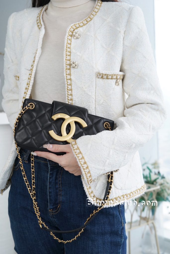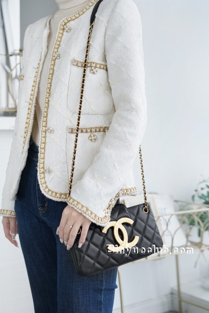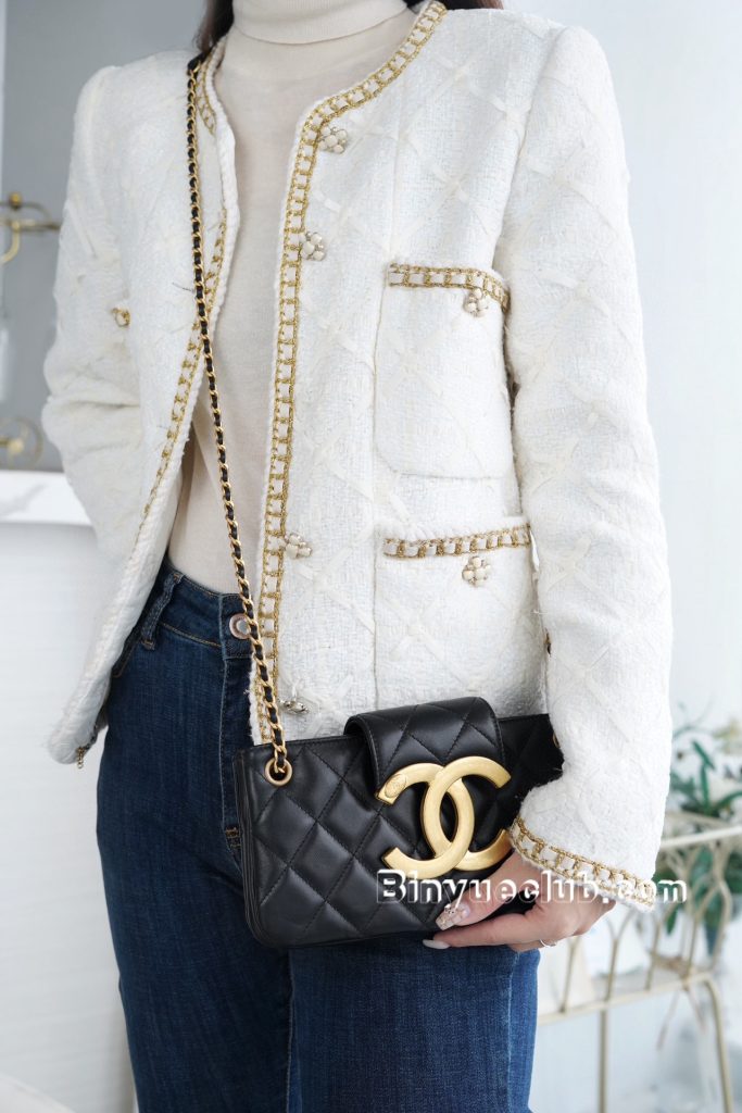 Once again, stunned by Chanel! So beautiful! Leather-woven chain with diamond lattice pattern interprets classic elements. The oversized double C logo is eye-catching and dazzling, presenting a definite vintage style with vibrancy – retro yet elegant. A touch of sophistication with any outfit!