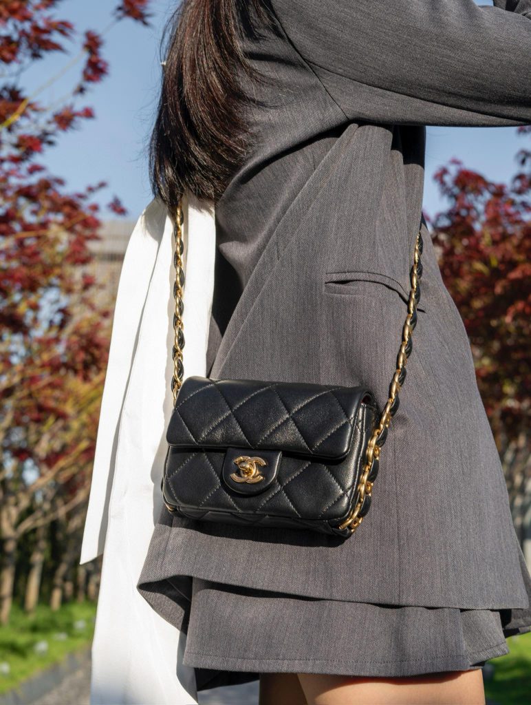 HomeBagsCHANEL 24k cf Chunky Chain Mini in Black Gold π€ BagsChanel CHANEL 24k cf Chunky Chain Mini in Black Gold π€ December 20, 2024 465 0 FacebookTwitterPinterestWhatsApp The vintage-style chunky chain series cf features a large diamond quilt design, along with the eye-catching full logo chunky chain element β¨. No matter how simple your outfit is, it cannot overshadow its powerful presence. Dimensions: 12x16x5 cm Tagscrossbody bagFlap FacebookTwitterPinterestWhatsApp Previous articleCHANEL 24k cf Chunky Chain Mini in PurpleNext articleMIU MIU Aventure Napa Leather Tote in Oak Binyuehttp://www.binyueclub.com RELATED ARTICLES Bags Chanel 19 Bag β Small, Black & Silver Bags Chanel 19 Bag β Medium, Black & Gold Bags Chanel 25B Star Lunchbox Bag Subscribe Login Notify of new follow-up comments new replies to my comments Label {} [+] Name* Email* Website Label {} [+] Name* Email* Website 0 Comments Oldest Newest Most Voted Inline Feedbacks View all comments Popular posts Chanel 19 Bag β Small, Black & Silver Bags Binyue - December 5, 2025 Chanel 19 Bag β Medium, Black & Gold Bags December 5, 2025 Chanel 25B Star Lunchbox Bag Bags December 5, 2025 Chanel Kelly 25C in white Bags December 5, 2025 Chanel 25k Hobo Shopping Bag β Black & Gold Lambskin Bags December 5, 2025 Popular categoriesBags784Chanel302Outfit of the Day139Dior113Hermes108LV104 My favoritesBagsChanel 19 Bag β Small, Black & SilverBinyue - December 5, 20250BagsChanel 19 Bag β Medium, Black & GoldBinyue - December 5, 20250BagsChanel 25B Star Lunchbox BagBinyue - December 5, 20250BagsChanel Kelly 25C in whiteBinyue - December 5, 20250BagsChanel 25k Hobo Shopping Bag β Black & Gold LambskinBinyue - December 5, 20250