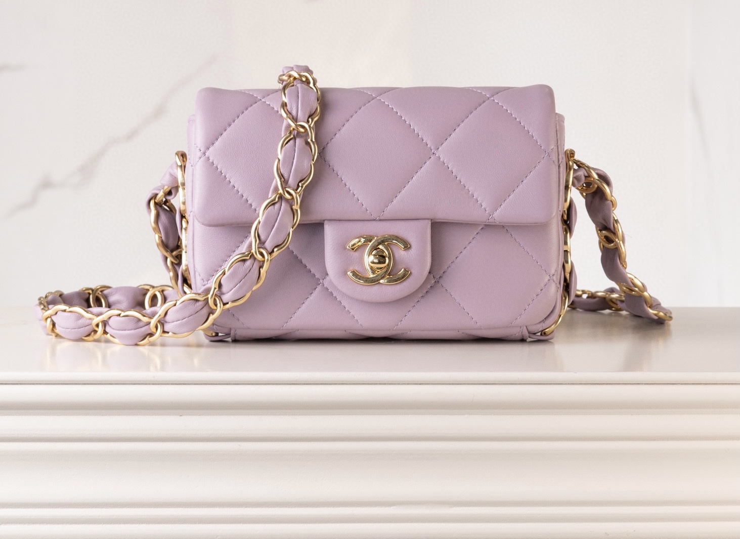 Vintage-style chunky chain, the classic large diamond quilt design of the cf, and the eye-catching full logo chunky chain element ✨, the soft purple sweet potato color 💜 is simply gorgeous to the point of being unfair! It gives off a vibe of wealth and carrying it casually will lift anyone’s spirits.