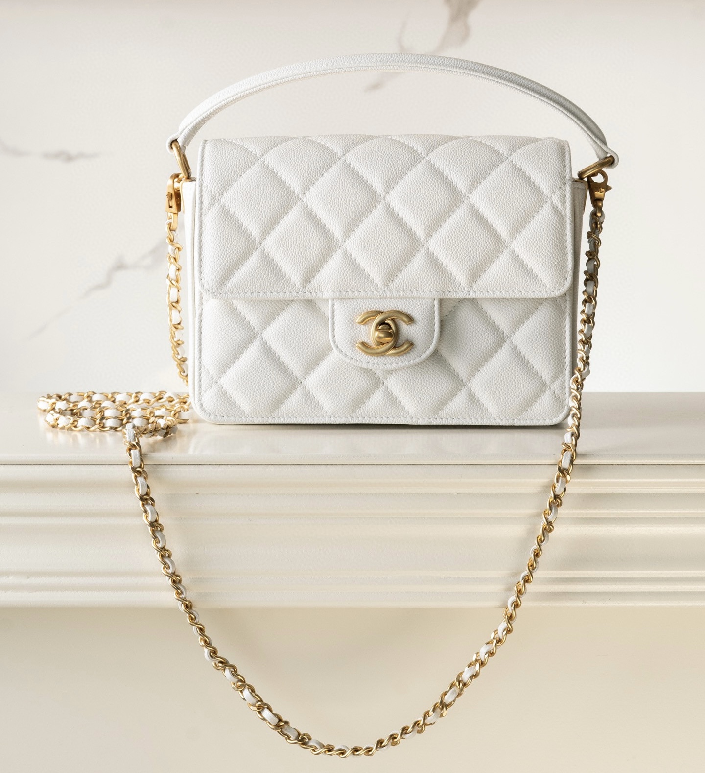 The classic quilted caviar leather CF surface is adorned with a small handle and logo decoration, adding a touch of fairy-like agility to this bag. The full contour stitching design reflects the perfect combination of classic and fashion at every turn. The detachable shoulder strap is versatile and practical, suitable for both hand-carrying and crossbody wear.
