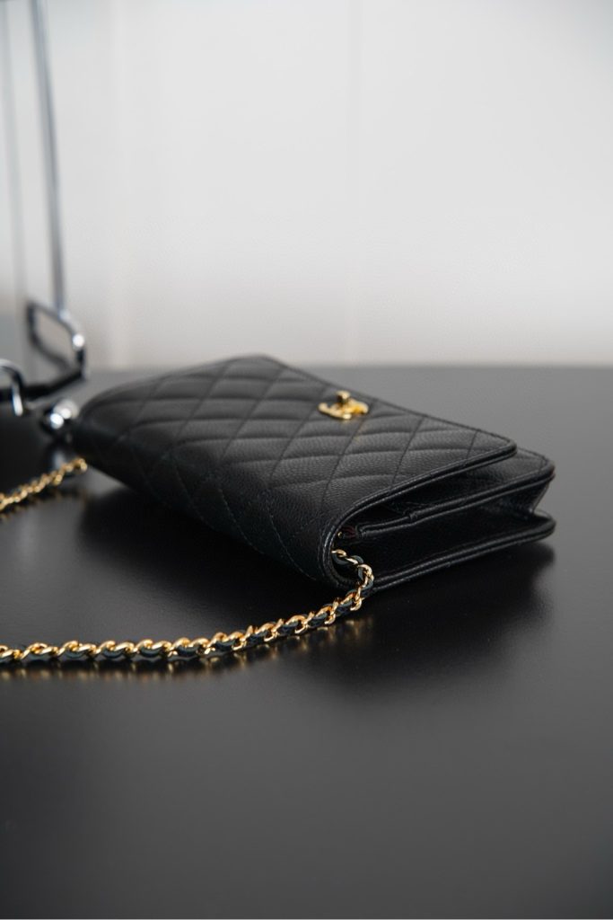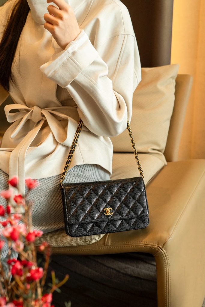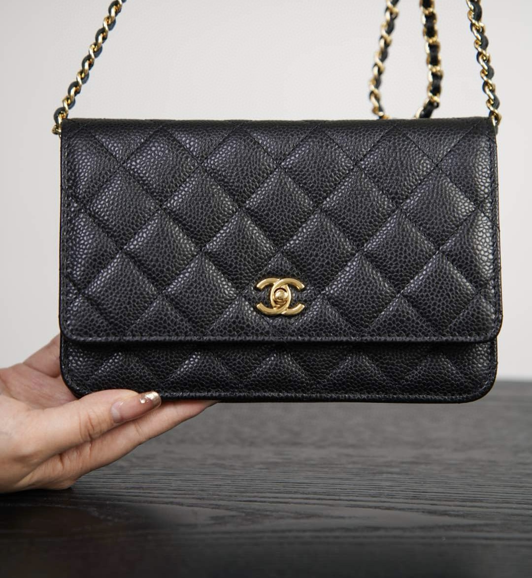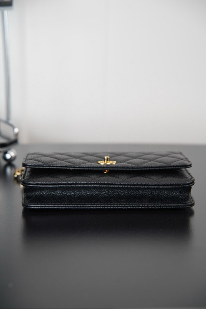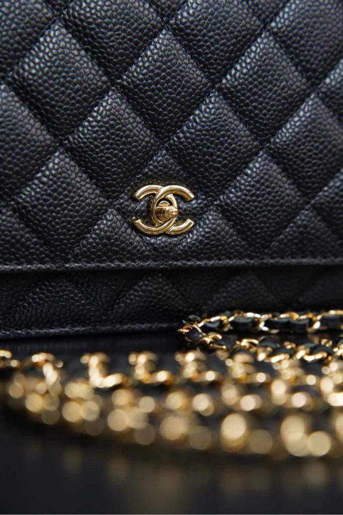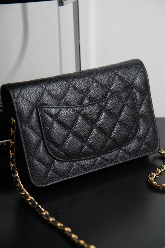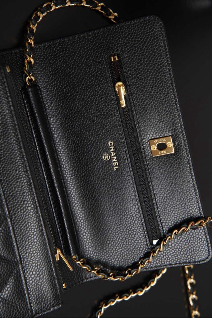 The black gold crocodile calf leather is durable. The interior is the same as the classic WOC. This bag is the first choice for beginners!