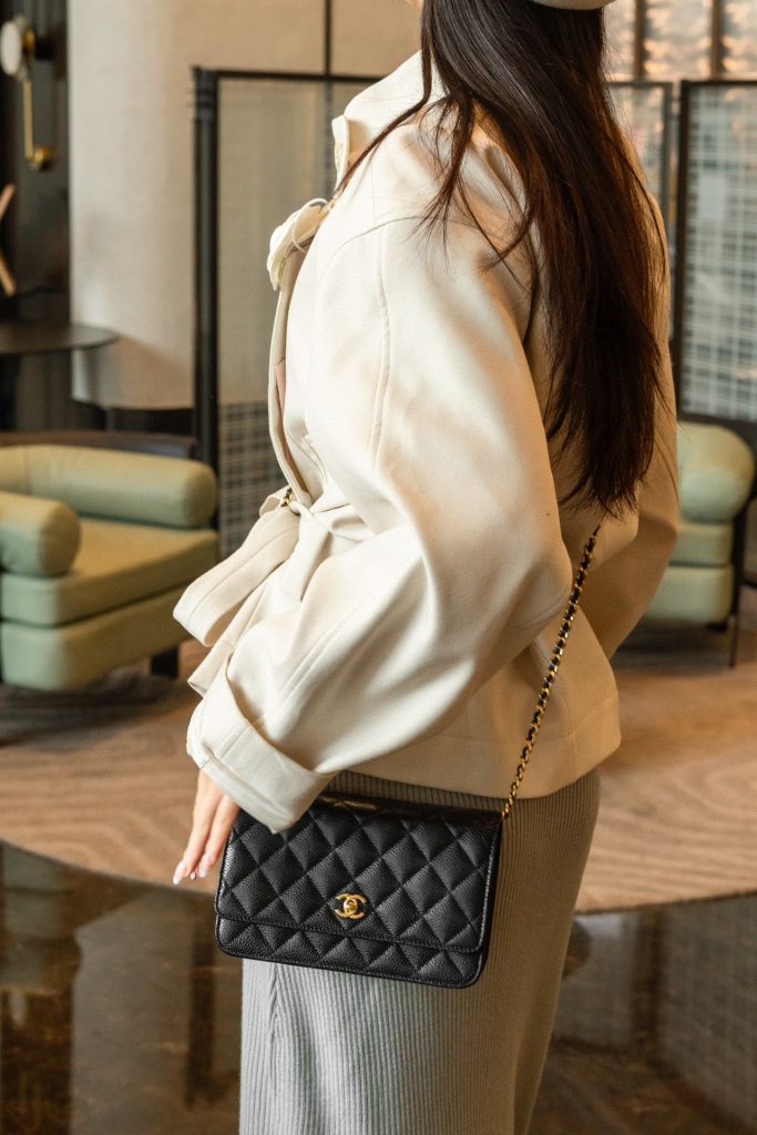 The difference lies in the opening and closing method of the double C. The original magnetic buckle has been upgraded to a rotating button. The rotating opening and closing mechanism provides a greater sense of security. Moreover, the double C logo is larger than that of the classic version, which makes it look more impressive and high-end.