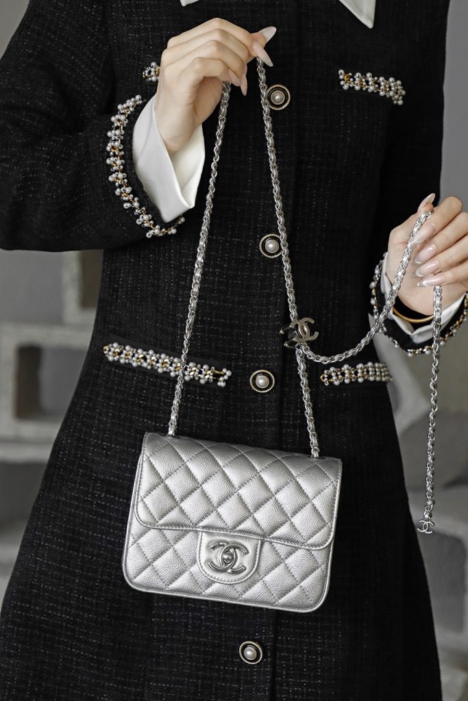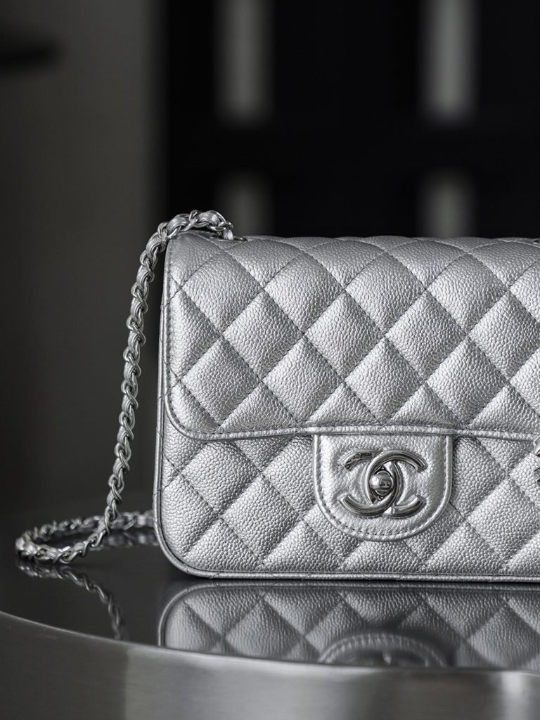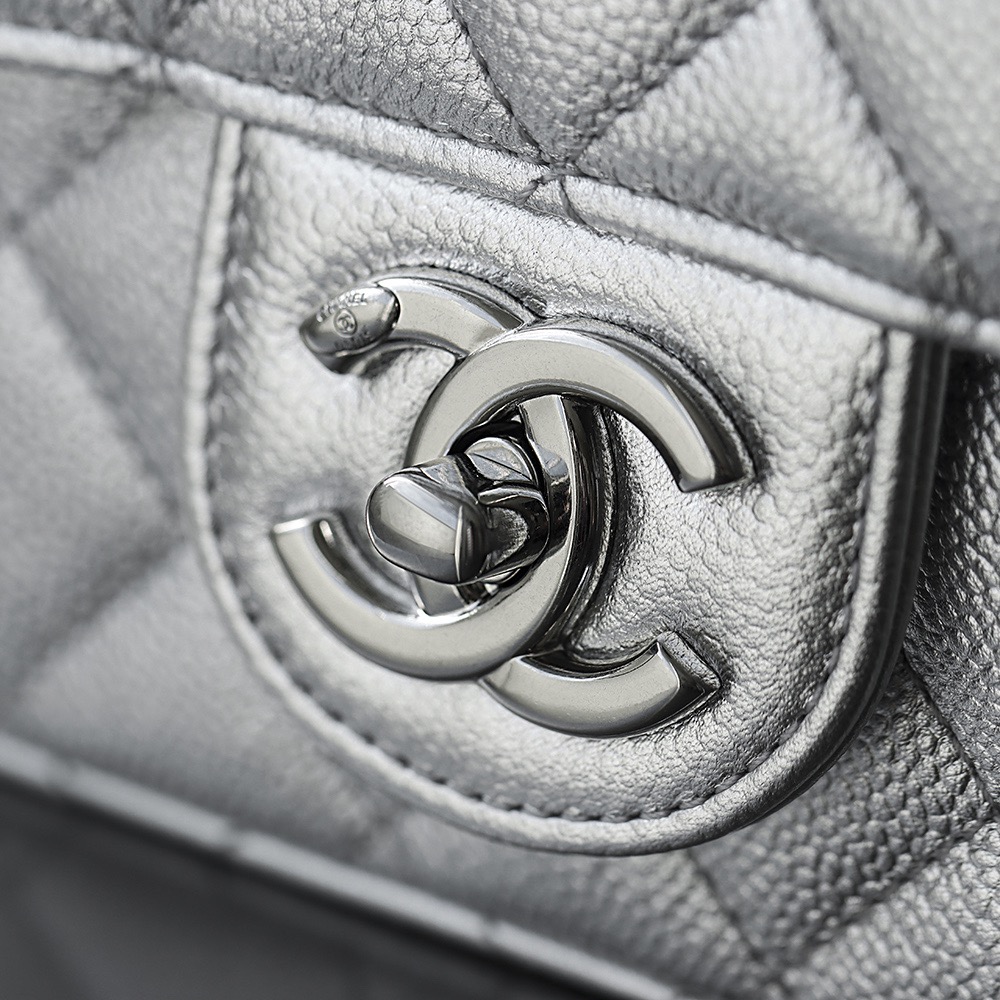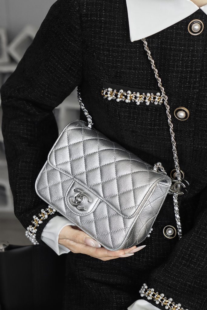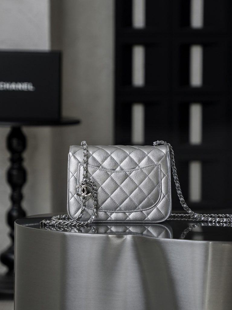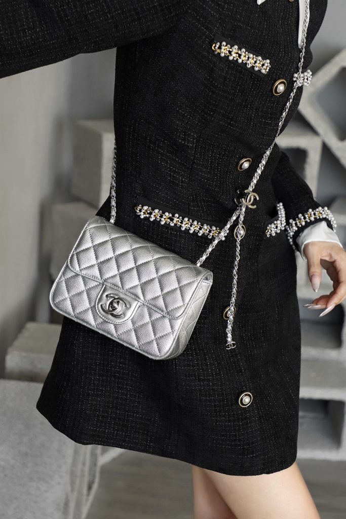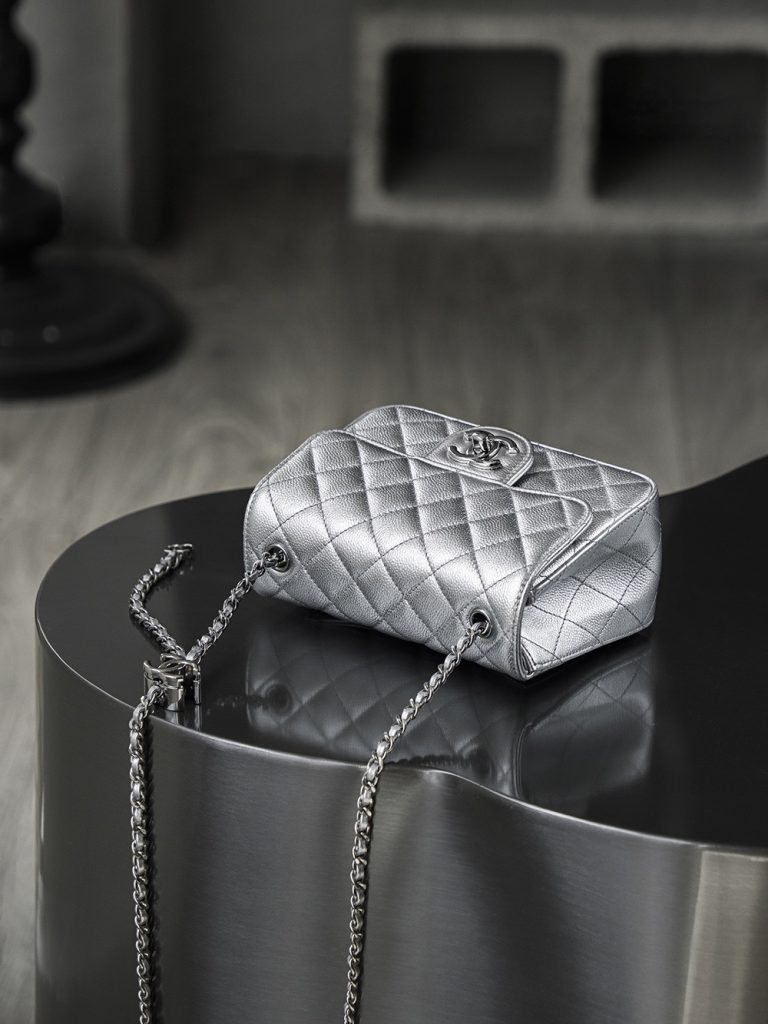 The 25B Double-C Adjustable Buckle Mini Flap continues the iconic “square-rounded” silhouette of the classic fan-favorite mini, giving it a retro yet playful charm. The Double-C adjustable buckle of the 25B serves as the highlight of the bag, shining in gold and adding a fashionable touch to the entire design!