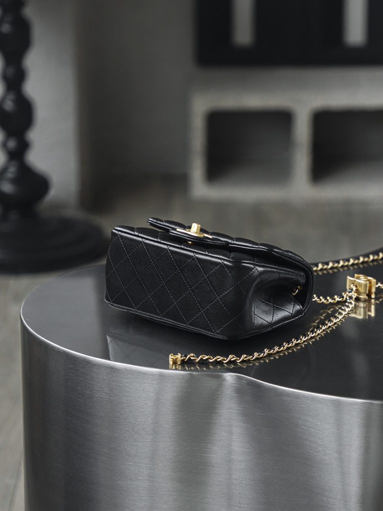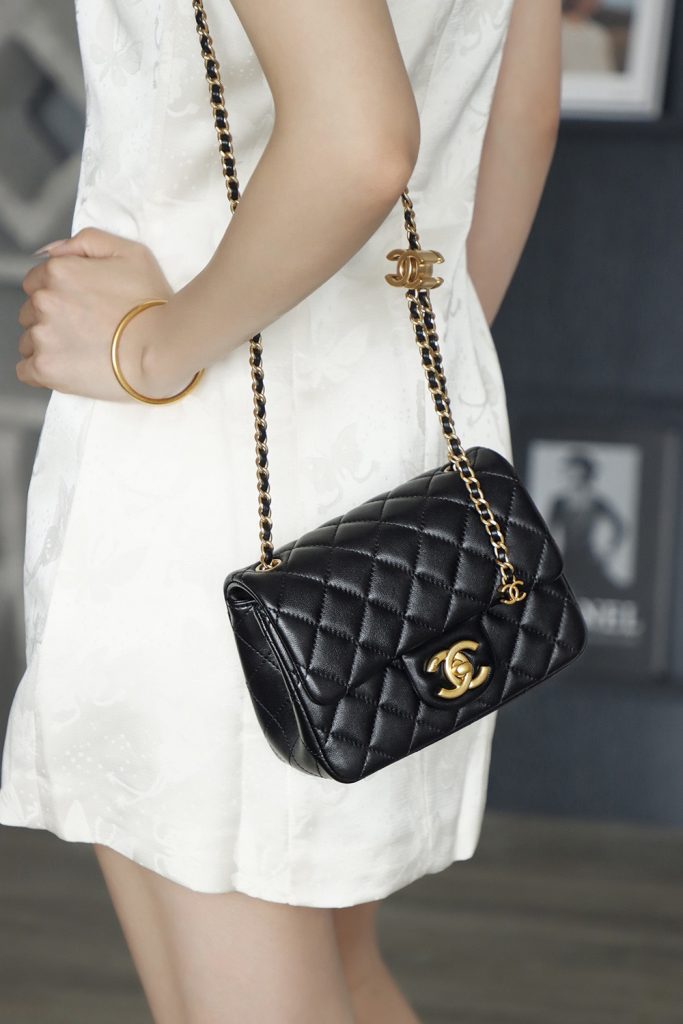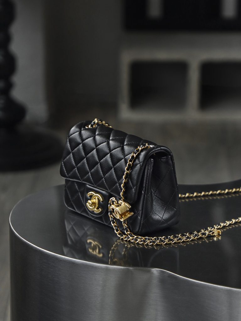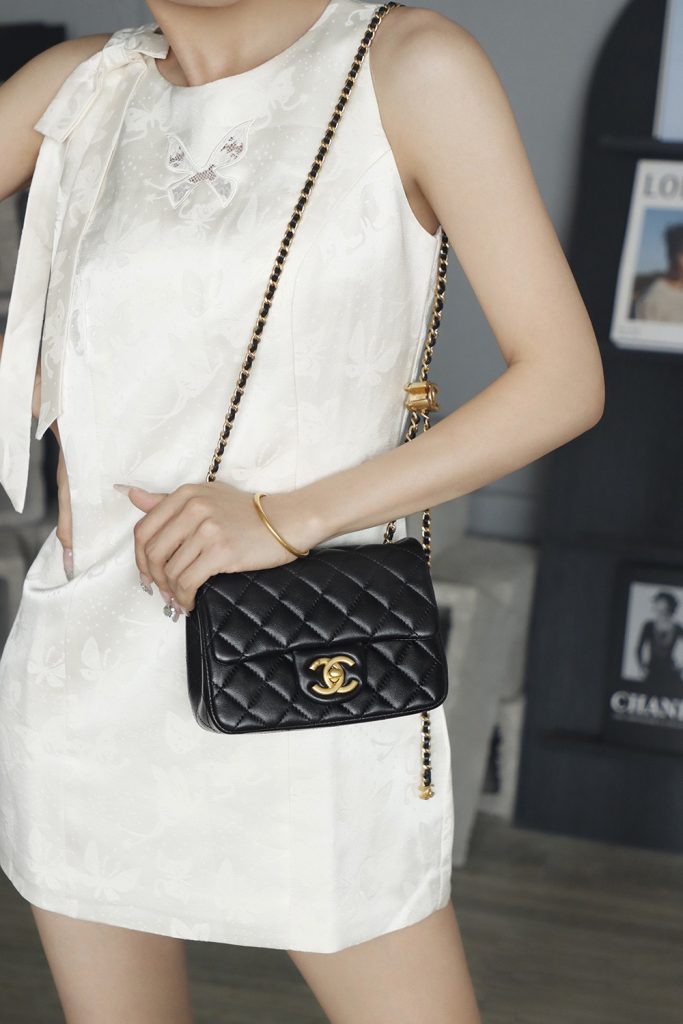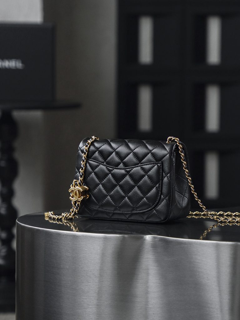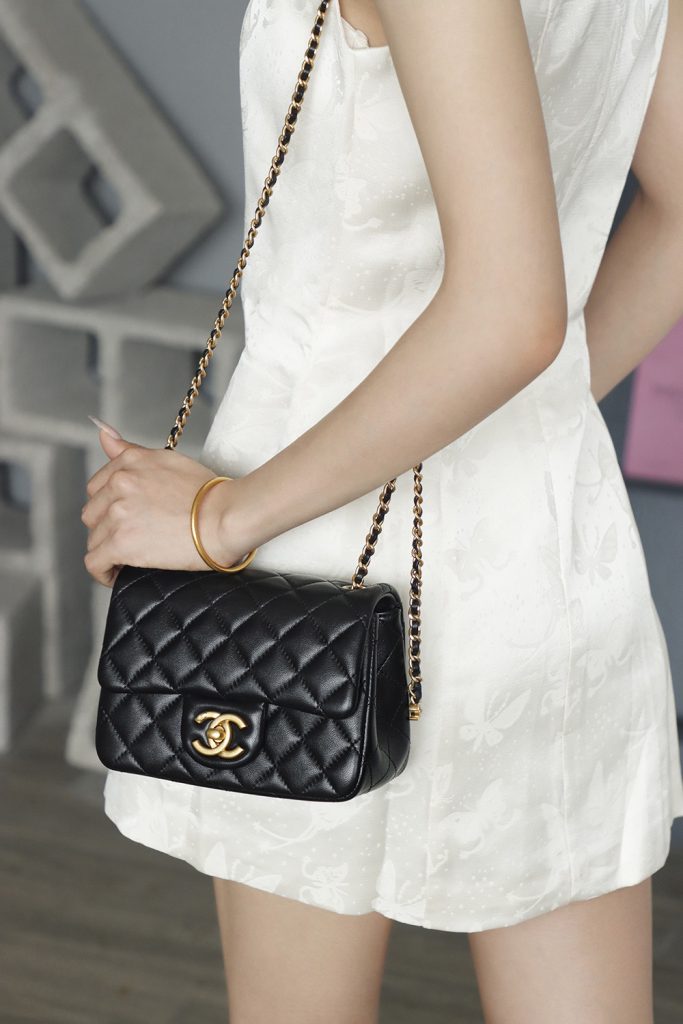 A playful take on a house classic, this square mini silhouette — often loved for its “boxy” yet soft structure — continues the signature charm of the iconic design from Chanel.