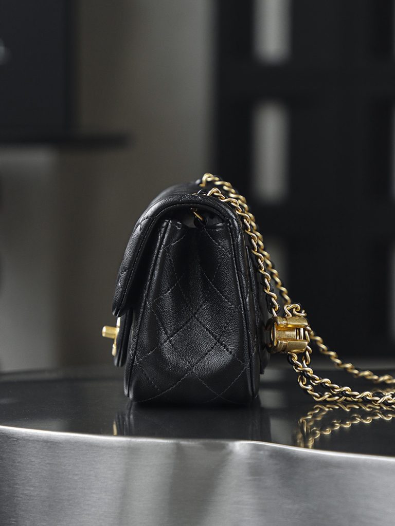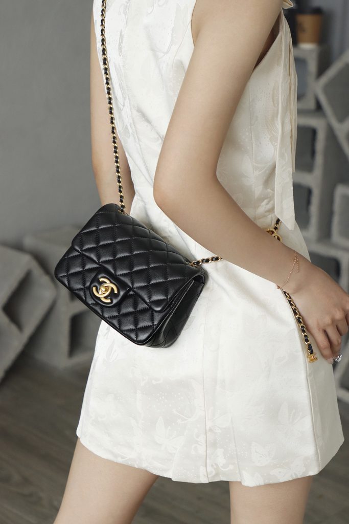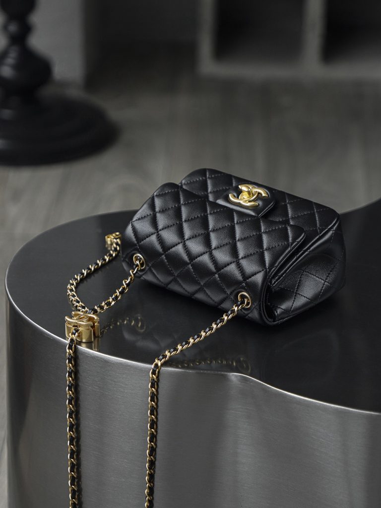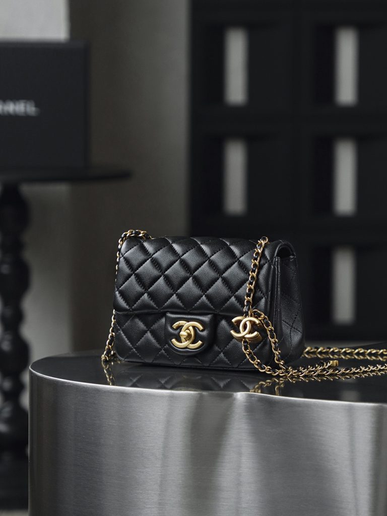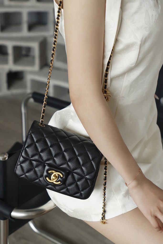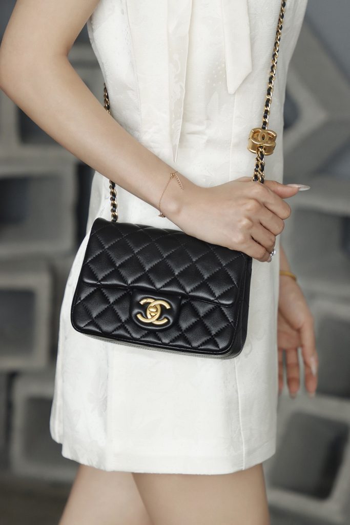 A playful take on a house classic, this square mini silhouette — often loved for its “boxy” yet soft structure — continues the signature charm of the iconic design from Chanel.