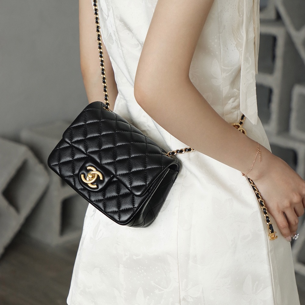A playful take on a house classic, this square mini silhouette — often loved for its “boxy” yet soft structure — continues the signature charm of the iconic design from Chanel.