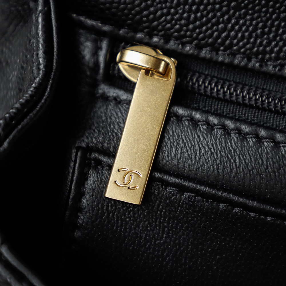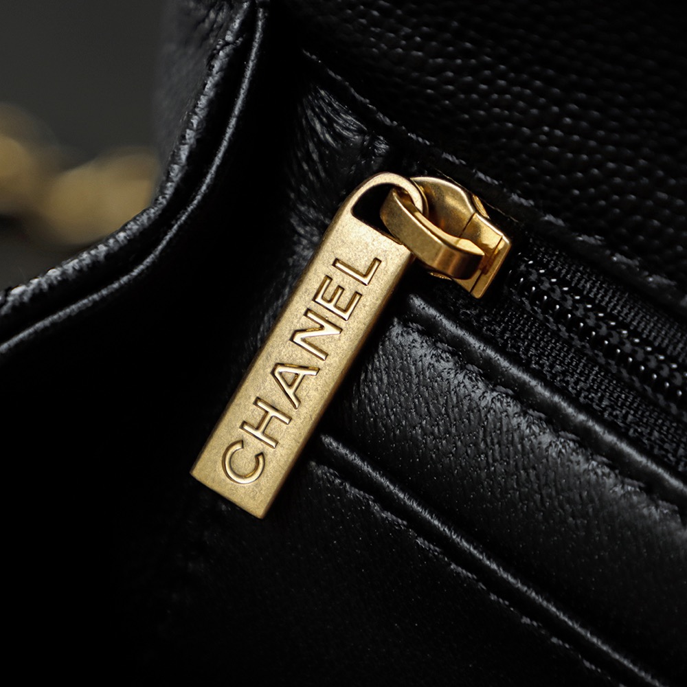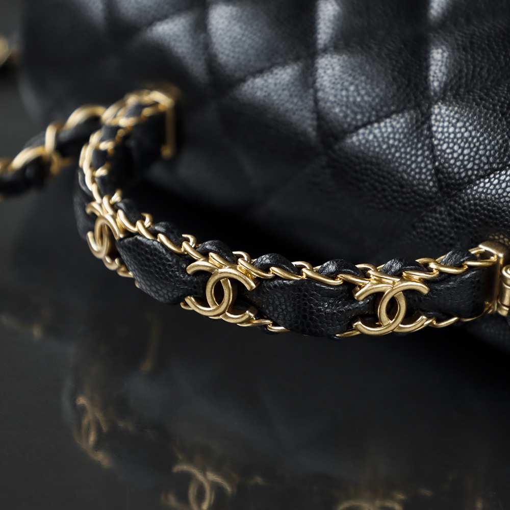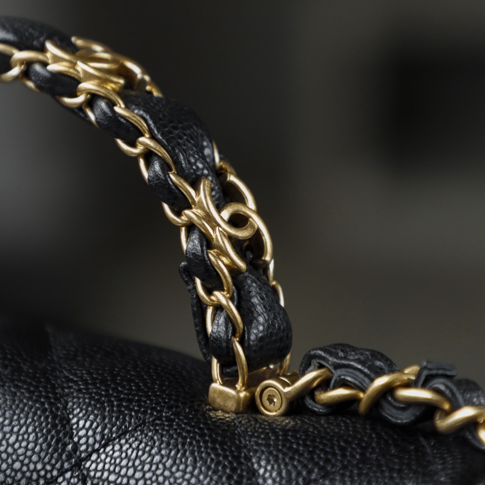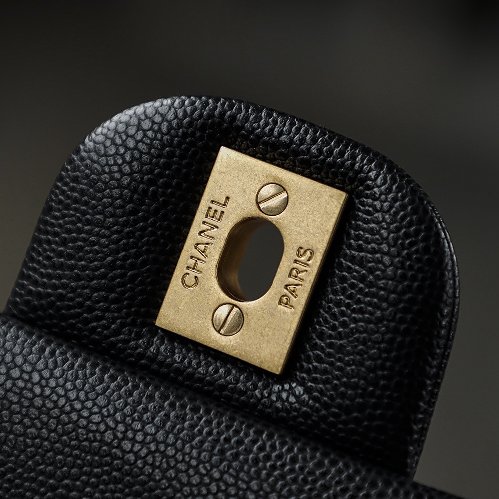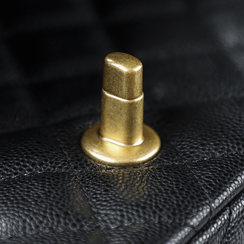 The signature Double C turn-lock, crafted in lustrous 24k gold-tone hardware, reflects the heritage and craftsmanship synonymous with Chanel. Paired with aged metallic finishes, it creates a rich, vintage-inspired aesthetic that elevates any look — from everyday styling to more polished occasions.