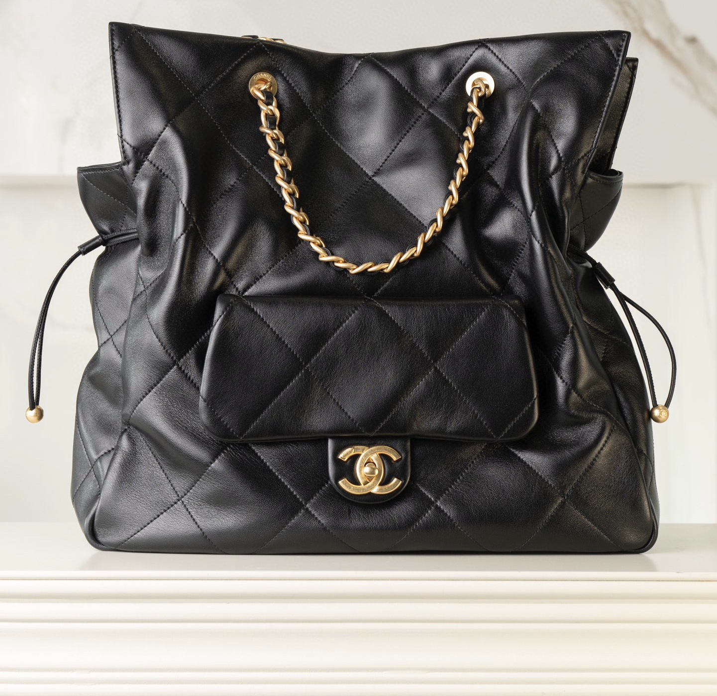 Chanel 25c Early Spring Shopping Bag Large Tote Black Gold