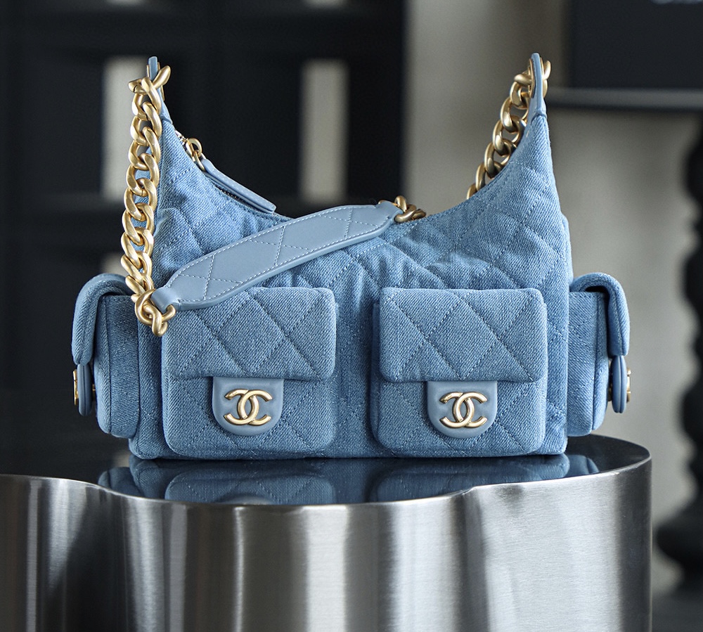 The 25C Hobo Denim is the reigning star of this season. Its low-saturation light blue denim is incredibly eye-catching, offering a versatile aesthetic that can be both sweet and chic! Popularized by Jennie, this style has become a sensation, instantly elevating the fashion quotient of any look, whether it’s a minimalist ensemble or a more delicate, feminine outfit.
