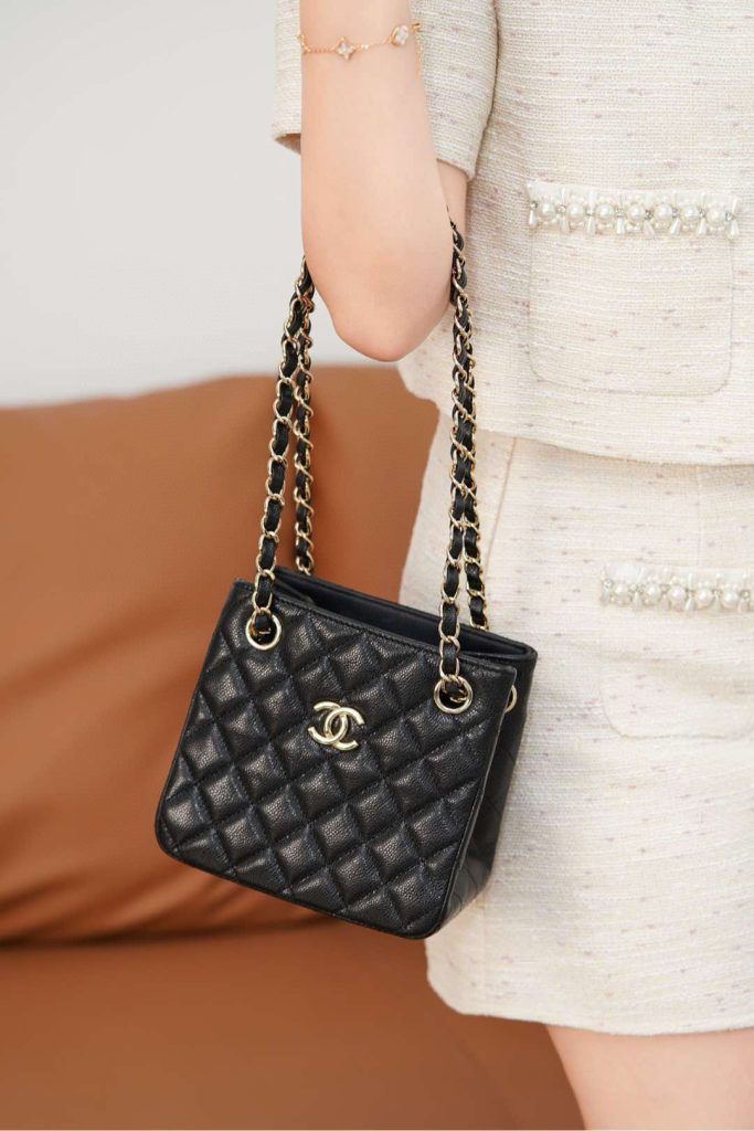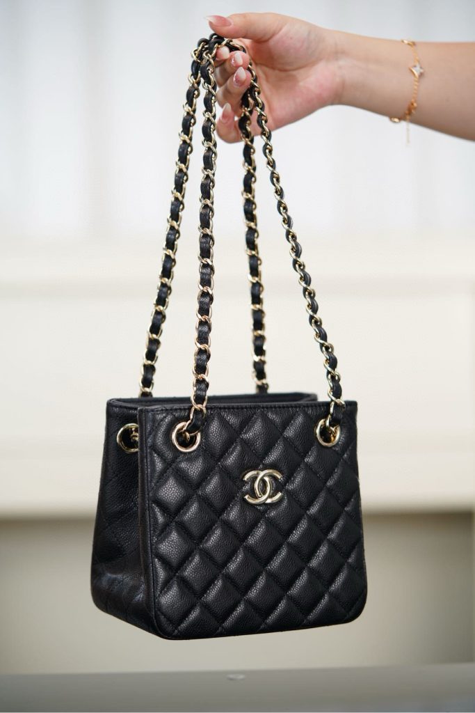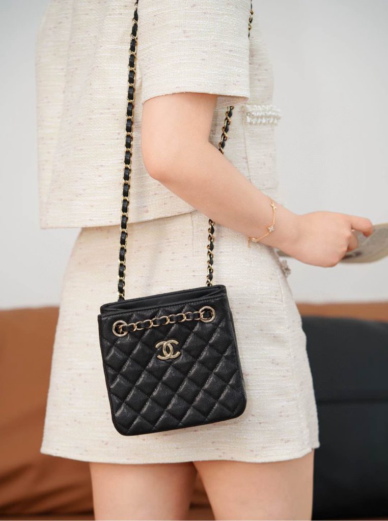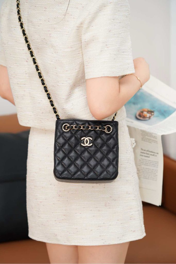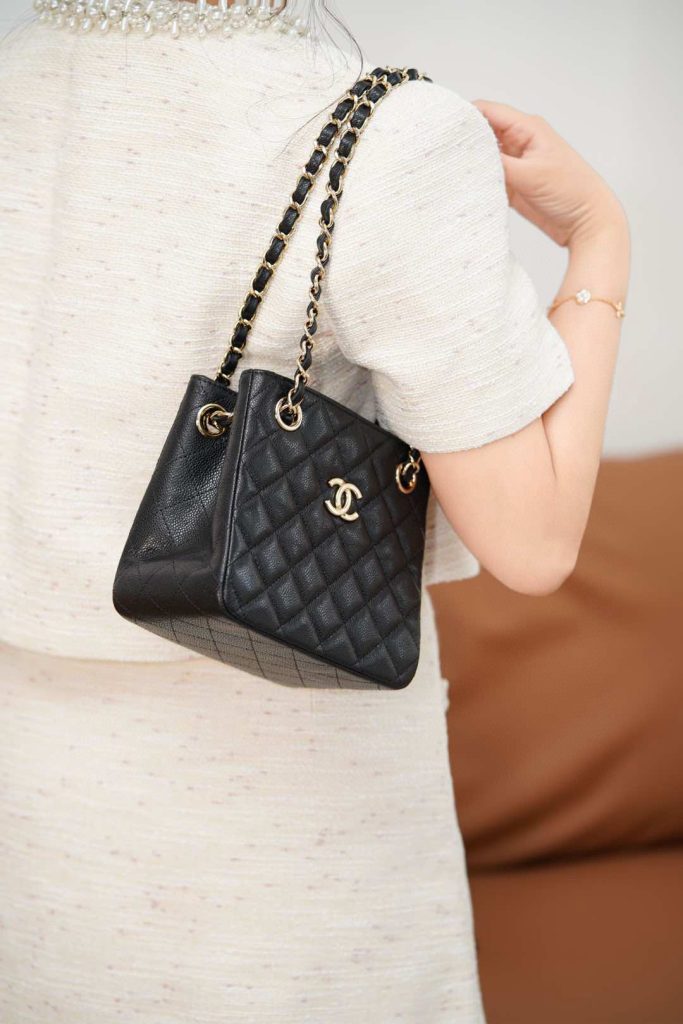 It is a mini bucket bag with great size and appearance. It looks very elegant and stylish when worn. It is extremely hard to get at the boutique. Highly recommended!