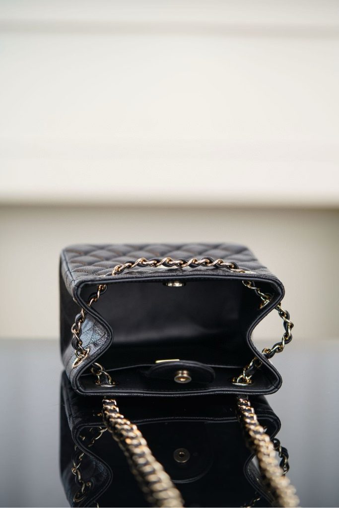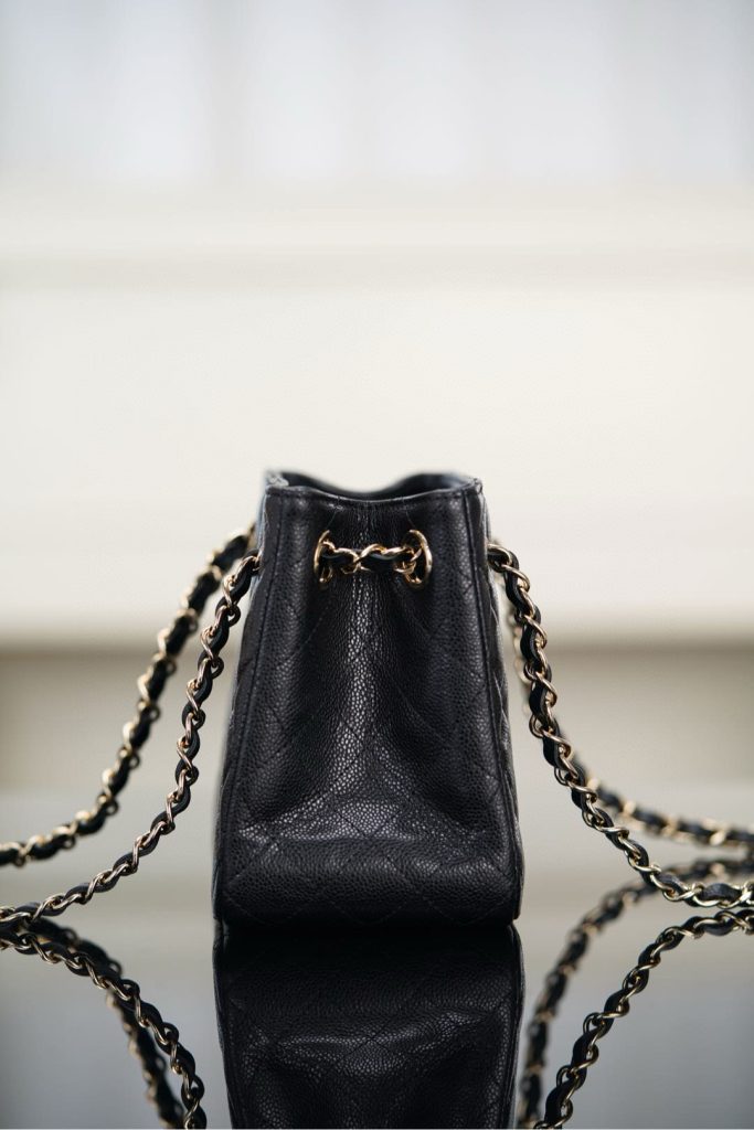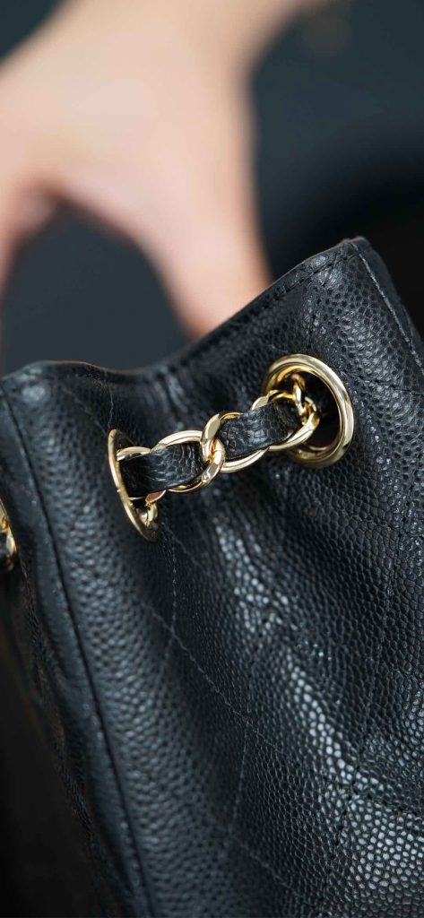 The multiple ways to wear it are just amazing! The chain strap is adjustable for shoulder, crossbody or top-handle carry. It is suitable for commuting and traveling. I can’t find any drawbacks! The space is quite roomy. It can even fit a plus-size item diagonally. The bag has a drawstring closure.