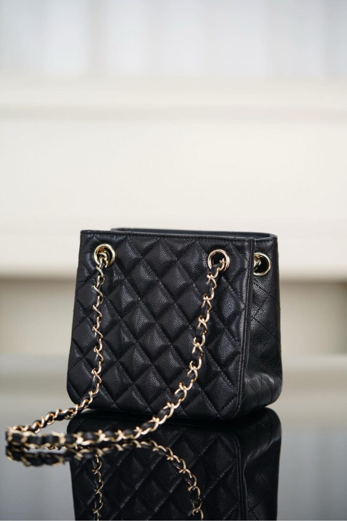 The adorable and spacious mini tote is back in stock. The bag has a very structured shape and it is a chip-enabled style.