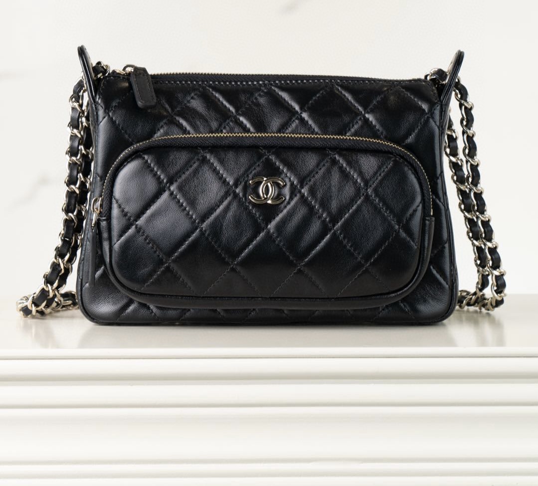The black and gold combination exudes sophistication. It has dual pocket zipper closures, with a small front pocket adorned with a ๐๐จ๐ ๐จ, creating a distinct sense of layering! The capacity is also enhanced.