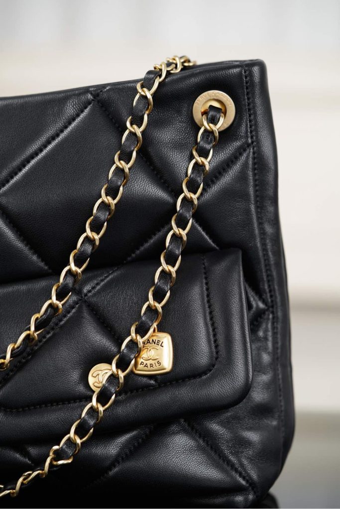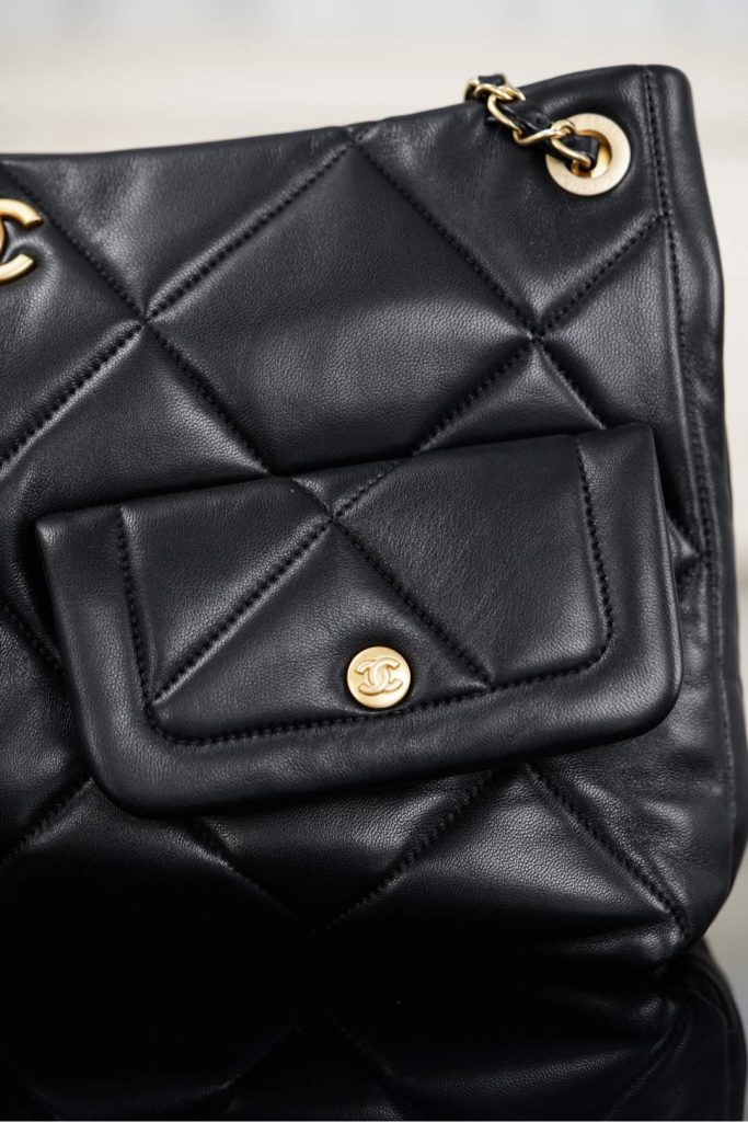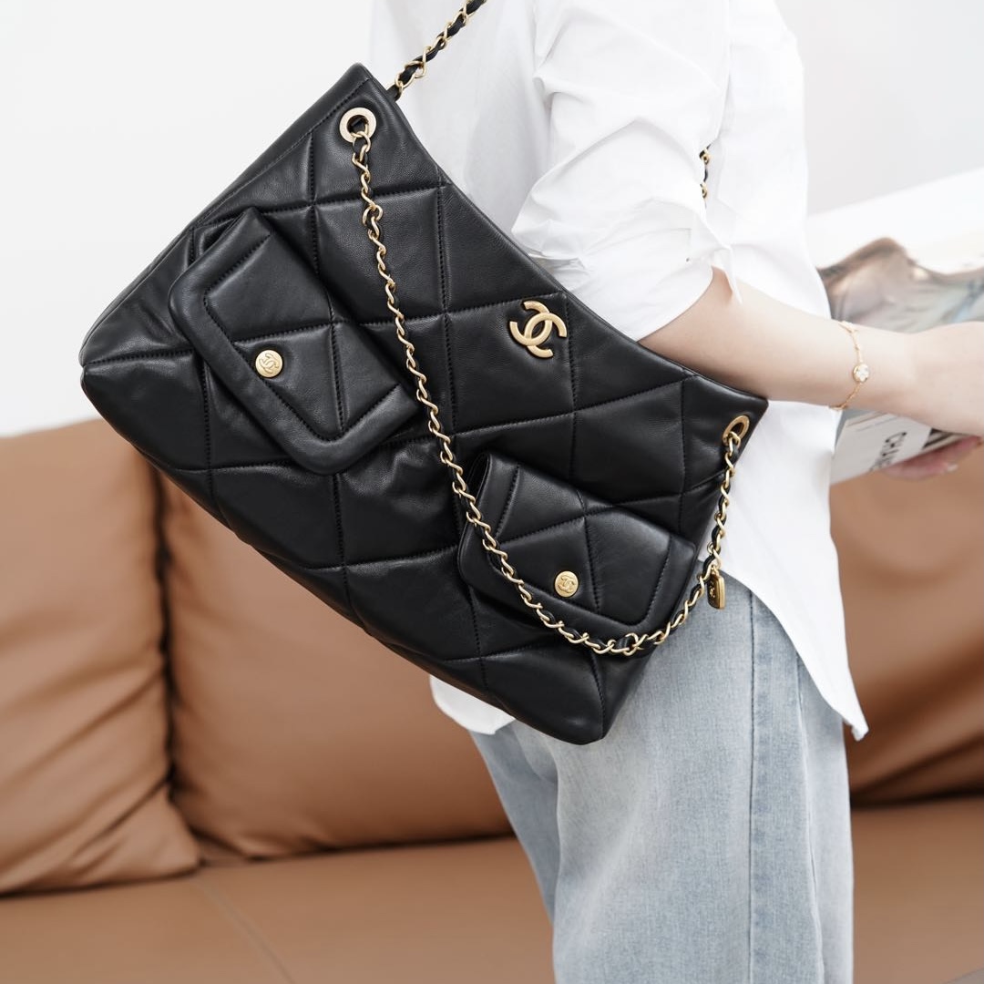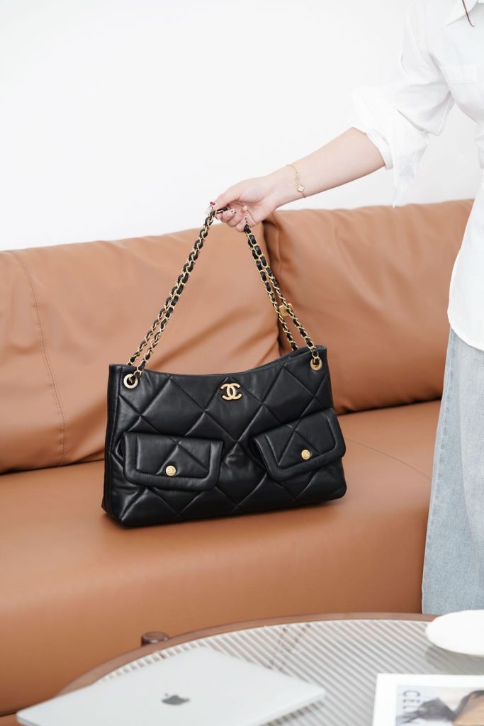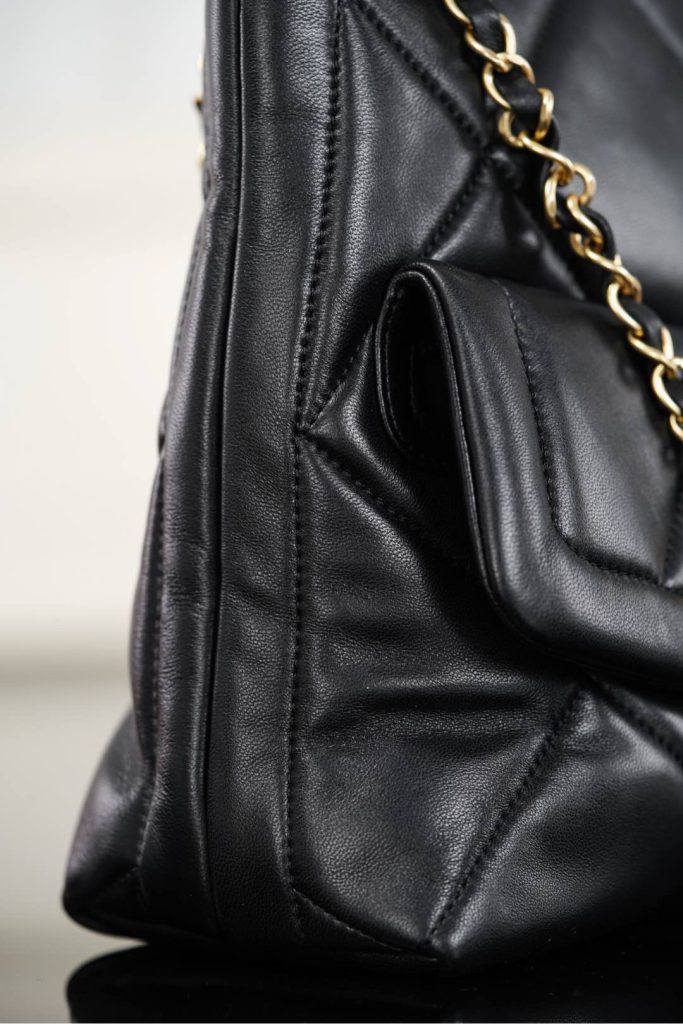 A must-have oversized bag for fall and winter, crafted in chocolate-smooth black lambskin with a soft, delicate touch. The classic diamond quilting, double-C hardware, and the little gold medallion on the chain instantly catch the eye. It carries a full vintage charm, while the relaxed, effortless Hobo shape adds a sense of casual elegance — making this bag a true “beauty currency” that never fails.