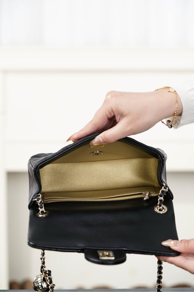 The Chanel 25K Gold Ball CF Mini in Black & Gold is the perfect blend of classic Chanel heritage and modern luxury styling.