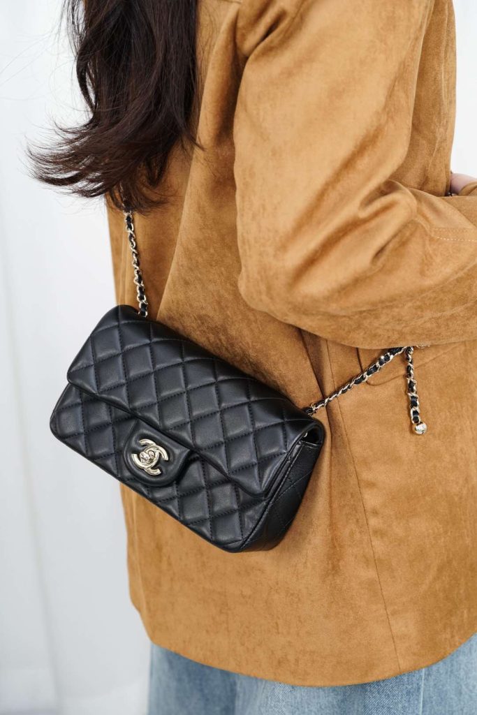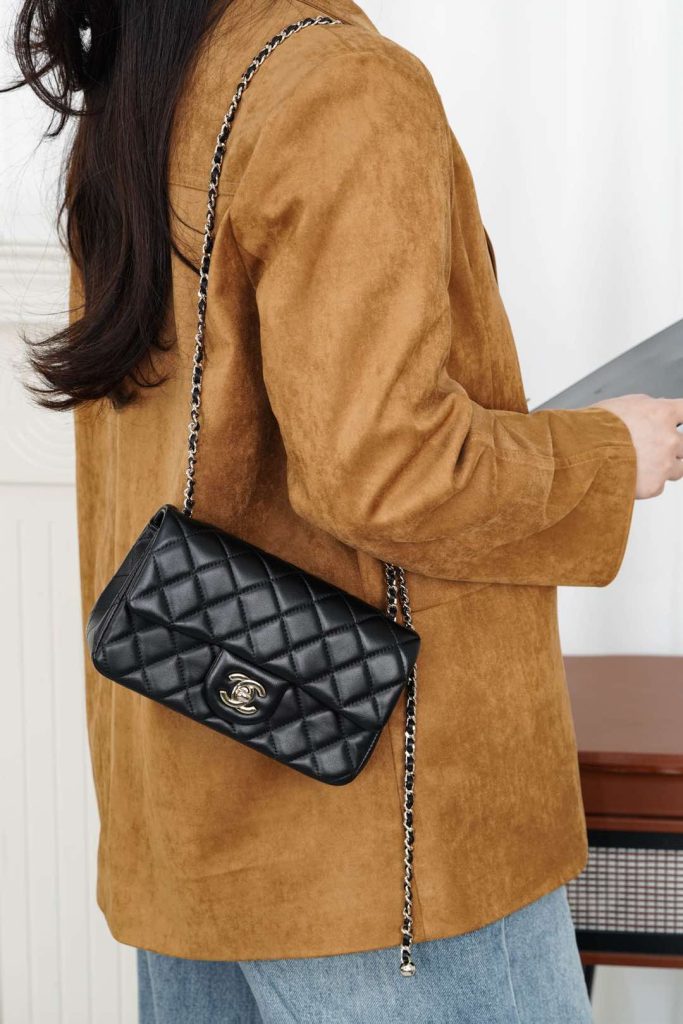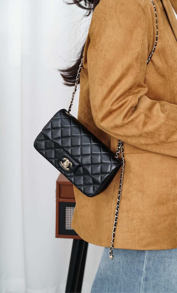 The Chanel 25K CF Mini with the iconic gold ball chain is one of the most coveted pieces of the season. The timeless black and gold combination instantly delivers a couture-level elegance that never goes out of style.
