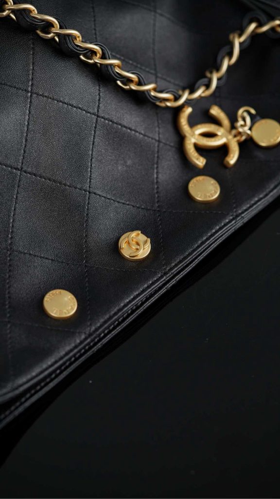 HomeBagsChanel 25P gold coin hippie hobo black gold🖤