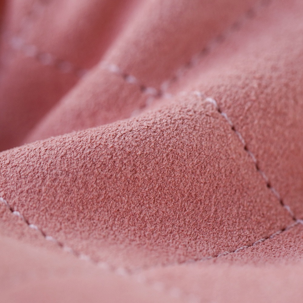 The velvety texture naturally creates a subtle “time-filter” effect, giving the bag an understated yet elevated sense of luxury. The delicate pink tone adds a soft feminine touch, while the refined silhouette captures the essence of high-end, quiet sophistication.