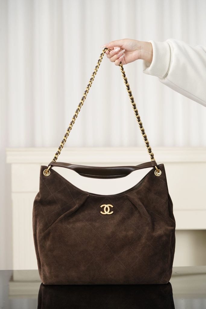 Chanel 26C Early Spring New Arrival – Hippy Hobo MAXI in Brown Suede
