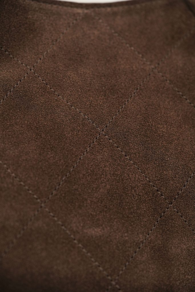 Made from Italian 🇮🇹 Bonaudo reverse suede, featuring a fine, thin nap on the surface. The texture is delicate, soft, and skin-friendly to the touch. Due to the natural characteristics of this leather, slight lightening or whitening on the surface is normal and not a color inconsistency. Minor aging or small suede fibers at the corners from regular use are also normal and do not indicate a quality issue.