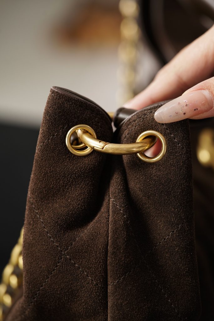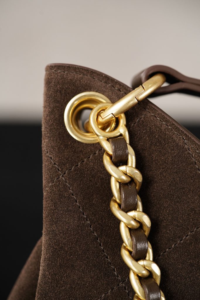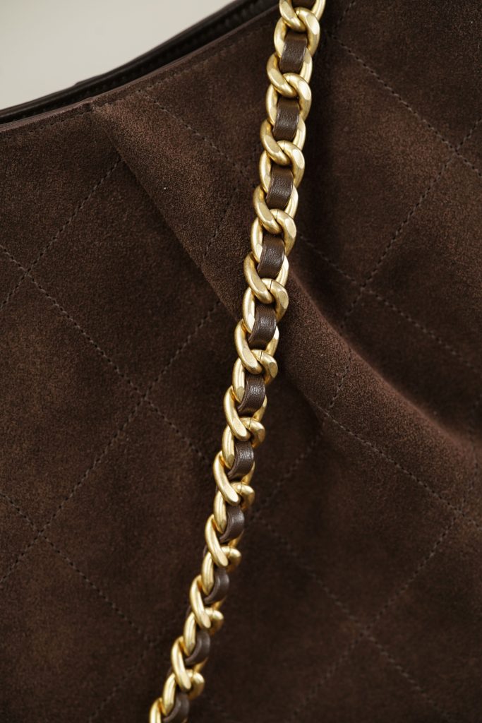 Crafted from Italian 🇮🇹 reverse suede, it is ideal for autumn and winter. The combination of a leather handle and metal chain allows for easy styling transitions between different occasions. With its generous capacity, it’s highly practical for everyday use—when it comes to commuting, a large bag is always the best choice.