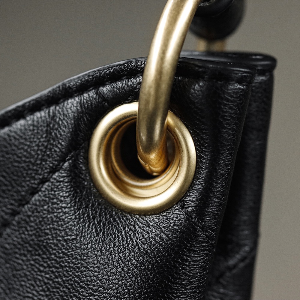 Crafted from ultra-soft Deviconcia lambskin, the bag drapes naturally against the body, creating that coveted “picked up and went” look. The rich 24K antiqued gold-tone hardware adds depth and character, grounding the softness with a subtle retro edge.