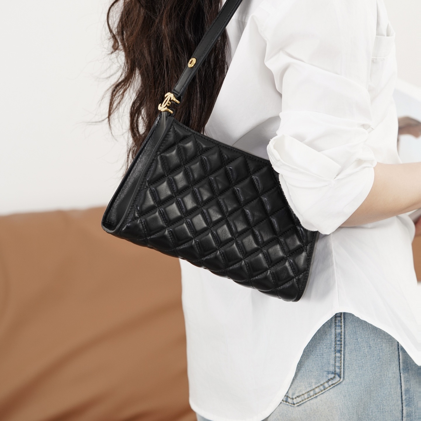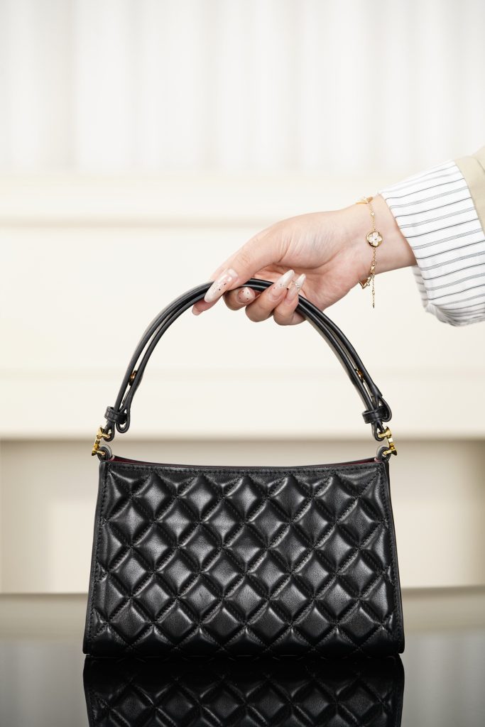 The short handle is adjustable, making it graceful whether carried by hand or worn on the arm.