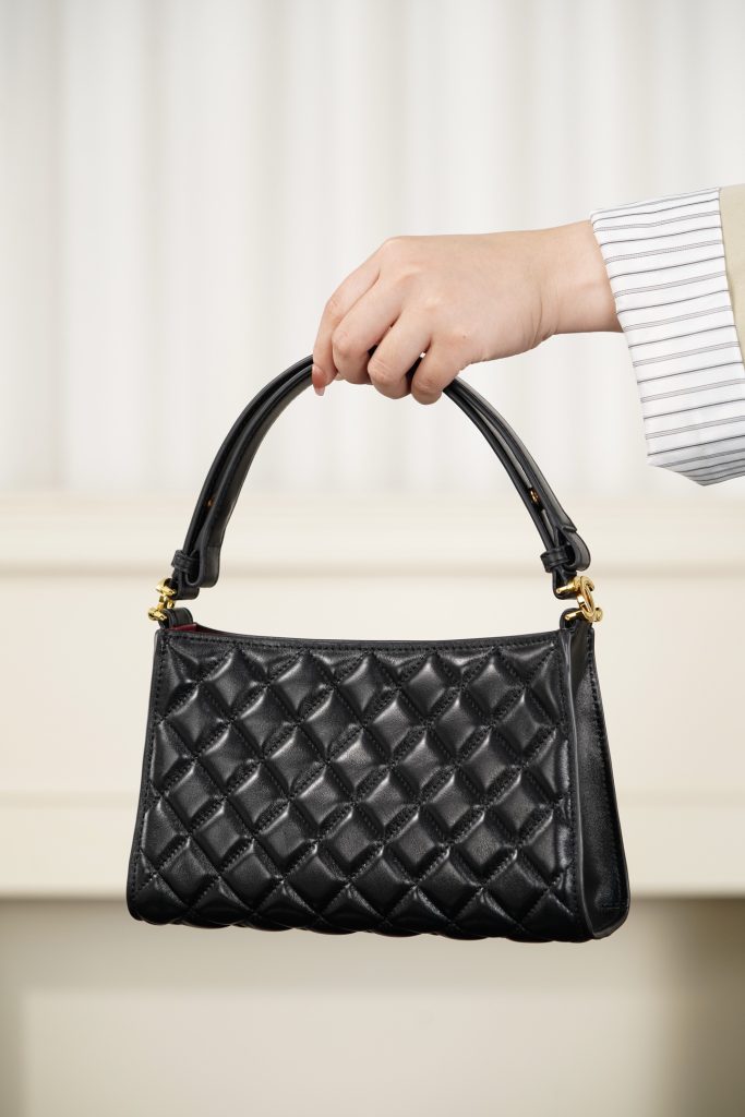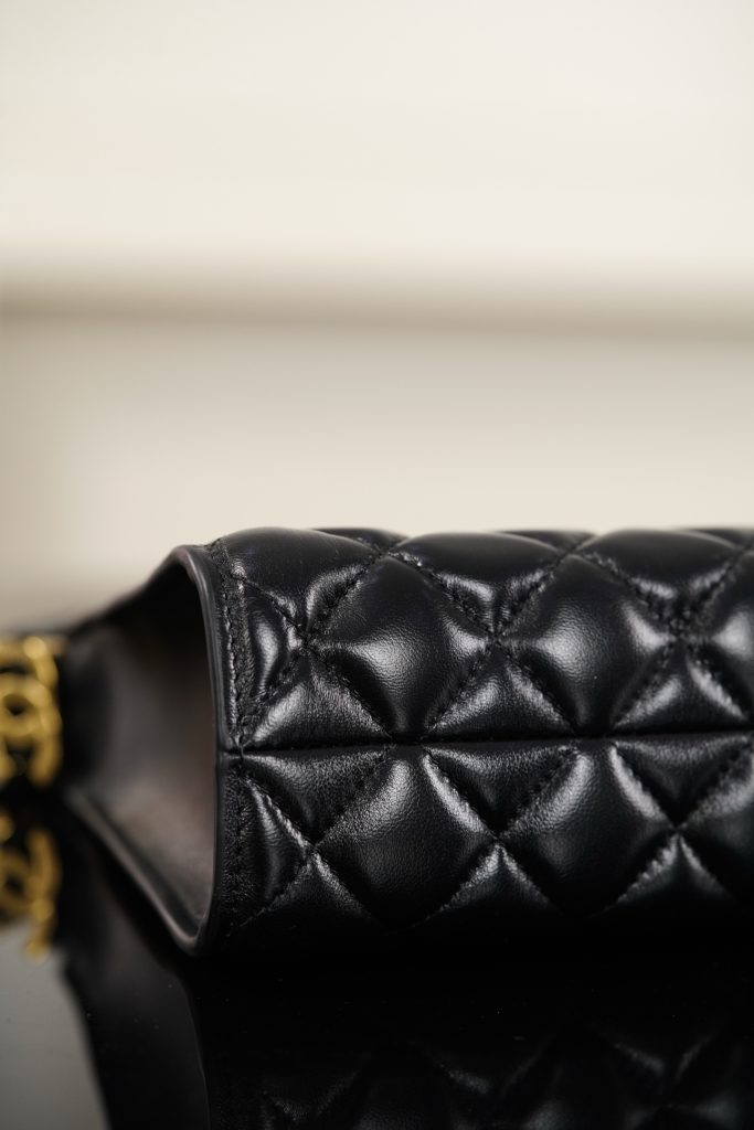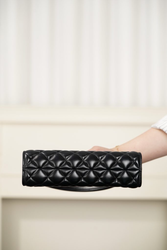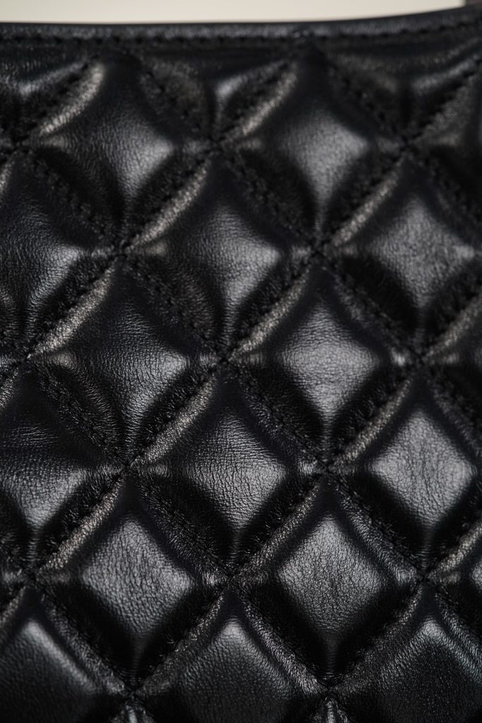 Crafted from supple black lambskin, the quilting is full, bouncy, and beautifully structured.