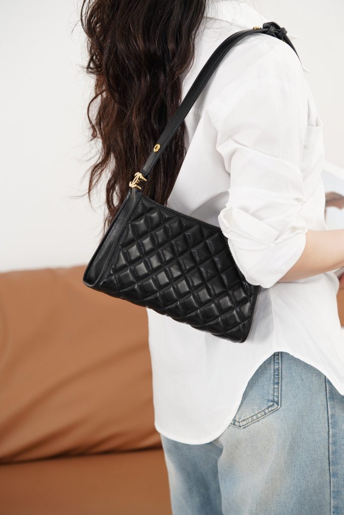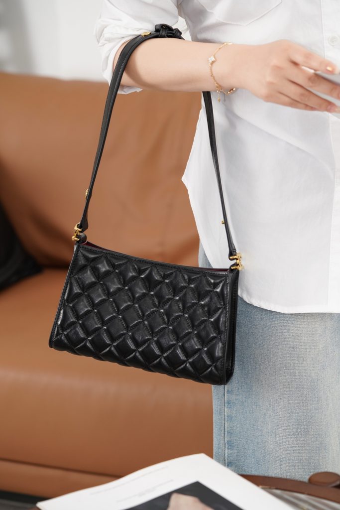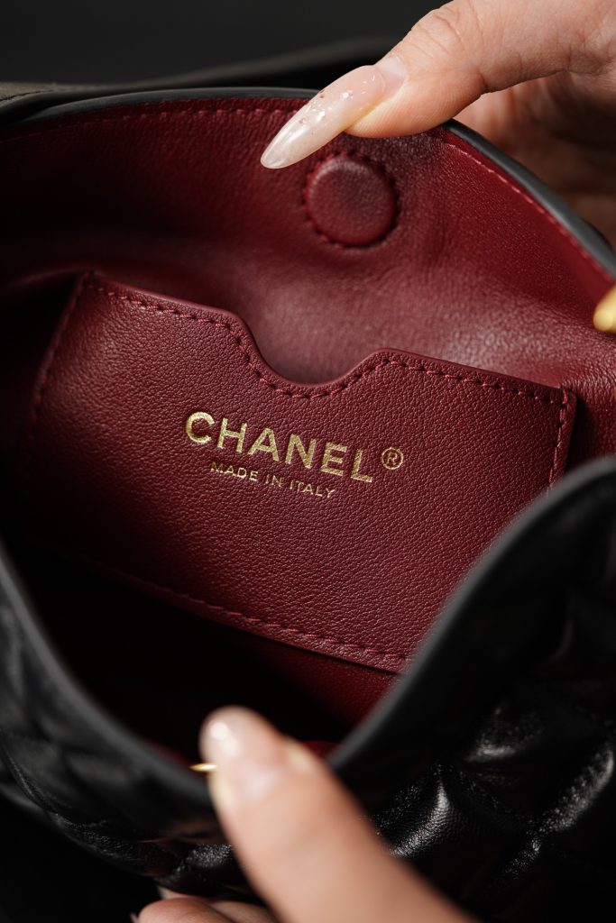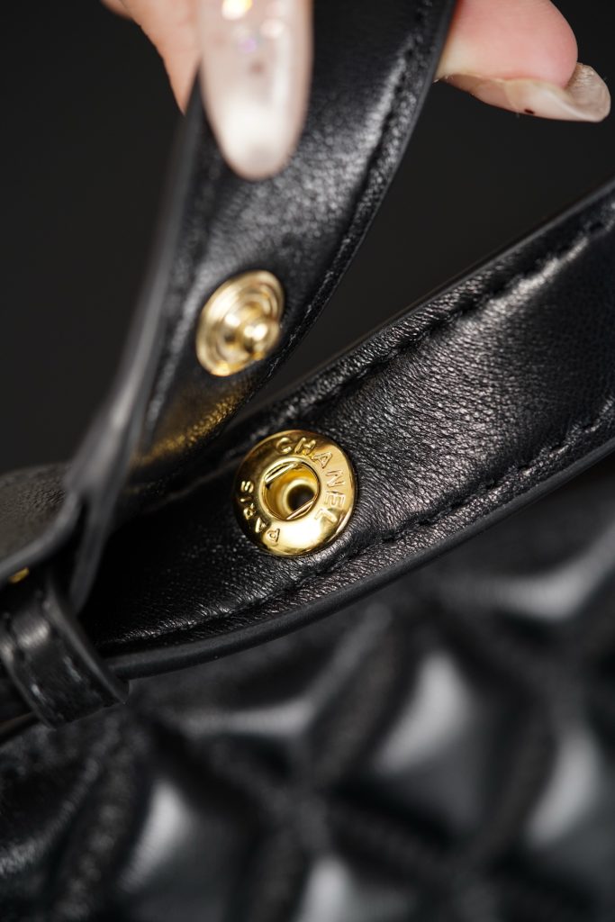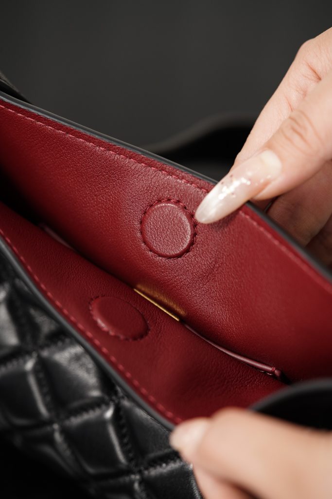 Crafted from supple black lambskin, the quilting is full, bouncy, and beautifully structured.